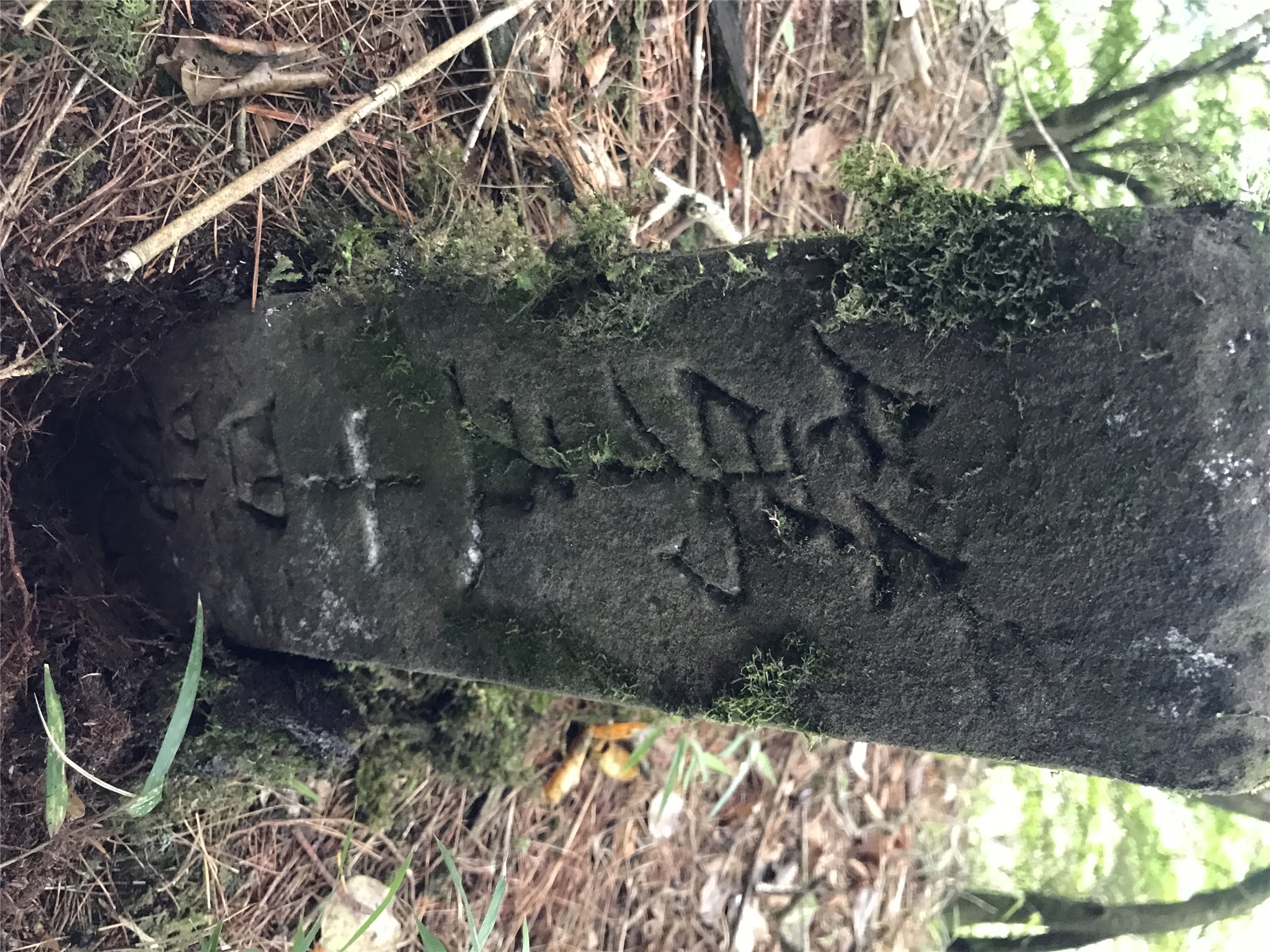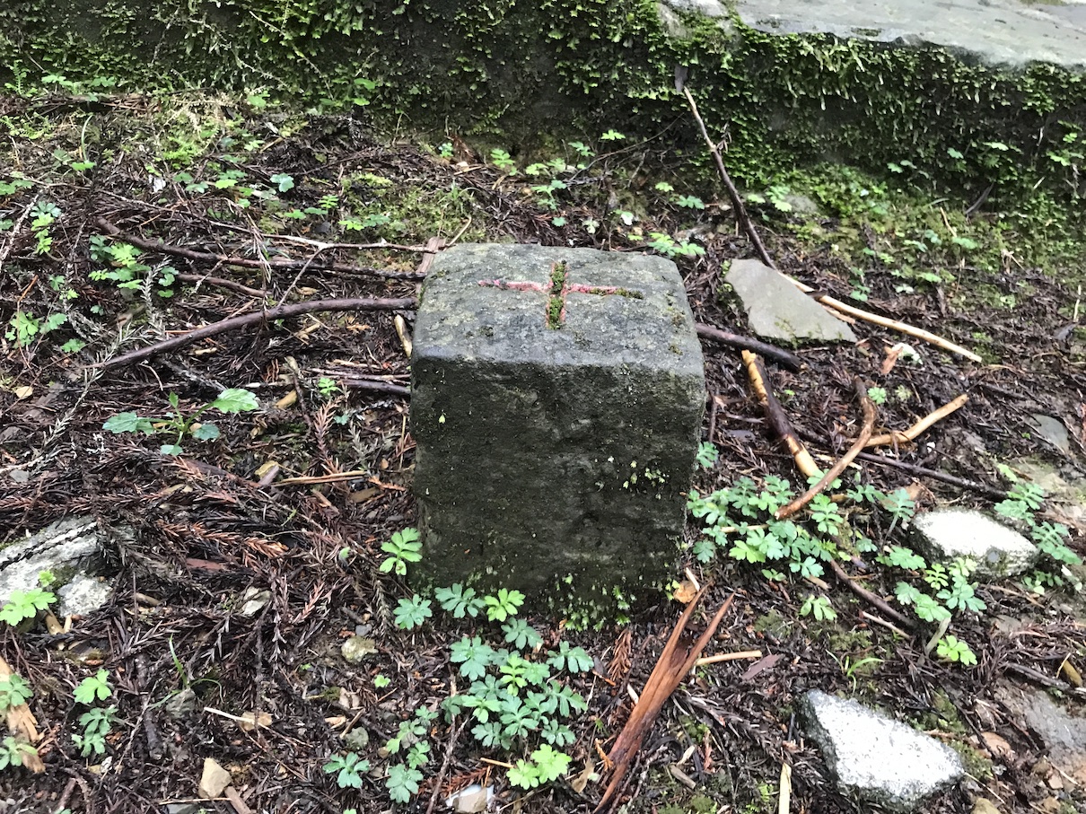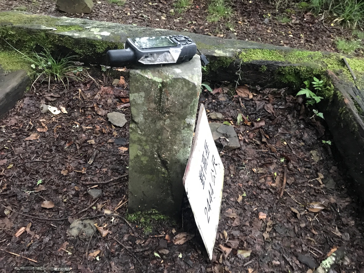 可見到一被青苔完全包覆的柱狀物,剛開始以為是被鋸斷的樹木,拿登山杖稍微捅一下,發現竟然是硬物,將厚厚的青苔完全移除後,