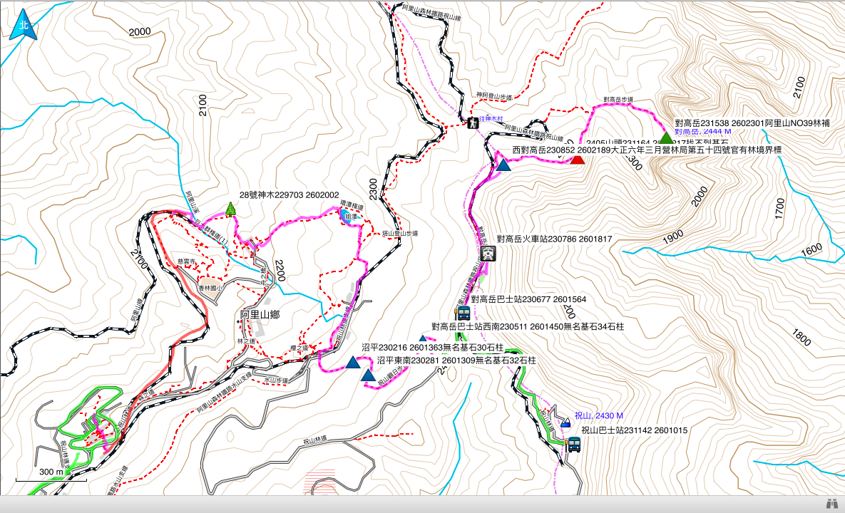 嘉義阿里山塔塔加、沼平、沼平東南、對高岳巴士站西南、西對高岳、及對高岳
