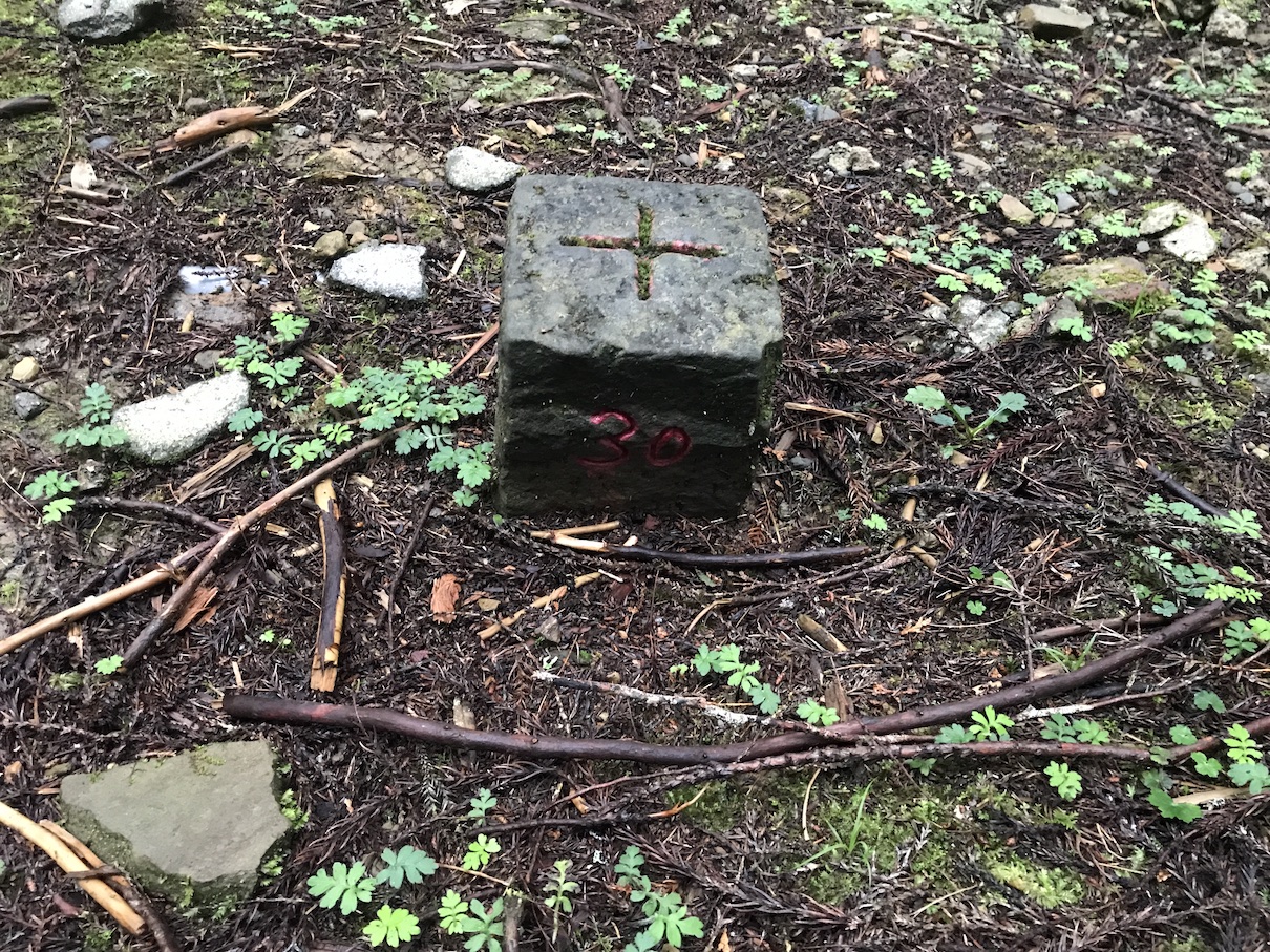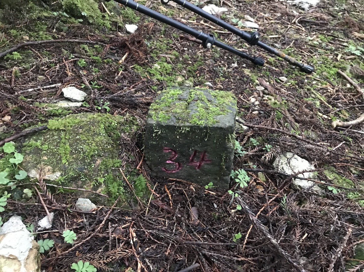 居然是西對高岳的大正六年三月營林局第五十四號官有林境界標。
