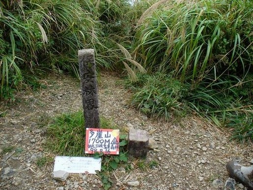 13:01~13:03 多崖山基點( H1700M 森林山字三角點),基石旁另有一根保安林水泥柱,基點上本有360°的展望可惜雲霧籠罩無視野,拍照退回叉路口