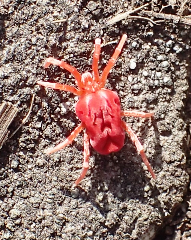 絨蟎為節肢動物門、蛛形綱中的蜱蟎亞綱,分類於绒蟎目 / 前氣門亞目 / 絨蟎總科,外形近似蜘蛛,成蟎體長 2.5-3.6 mm,紅褐色,長橢圓形,全身覆蓋絨毛,頭、胸、腹癒合不分節,各足5-6節,末端有2爪,爪間有爪墊, 若蟎橘紅色,跗節細長,卵形,外觀近似成蟎,常見寄主於昆蟲身體,有些種類群聚寄生,數量多時會造昆蟲無法飛行覓食而死亡。(資料網路載取)