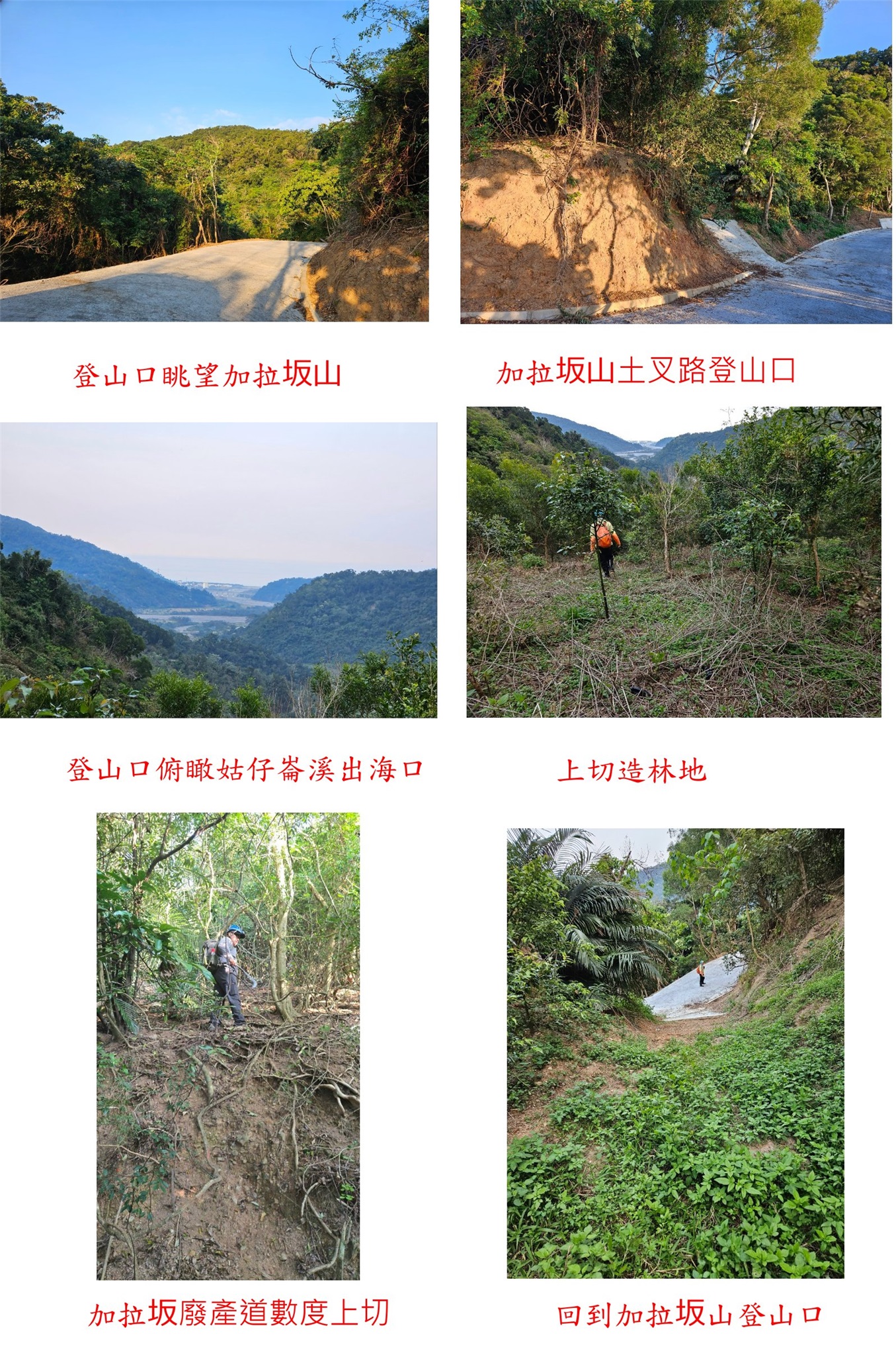 07:23△加拉坂山,高341公尺,台灣省政府圖根補點,此點台東阿倫找到後1年多前曾來過,隊友也都來過順路再訪;此點廢產道已接近基石難度不高,無明顯山頭且於樹林間無展望,上山走50分鐘。
