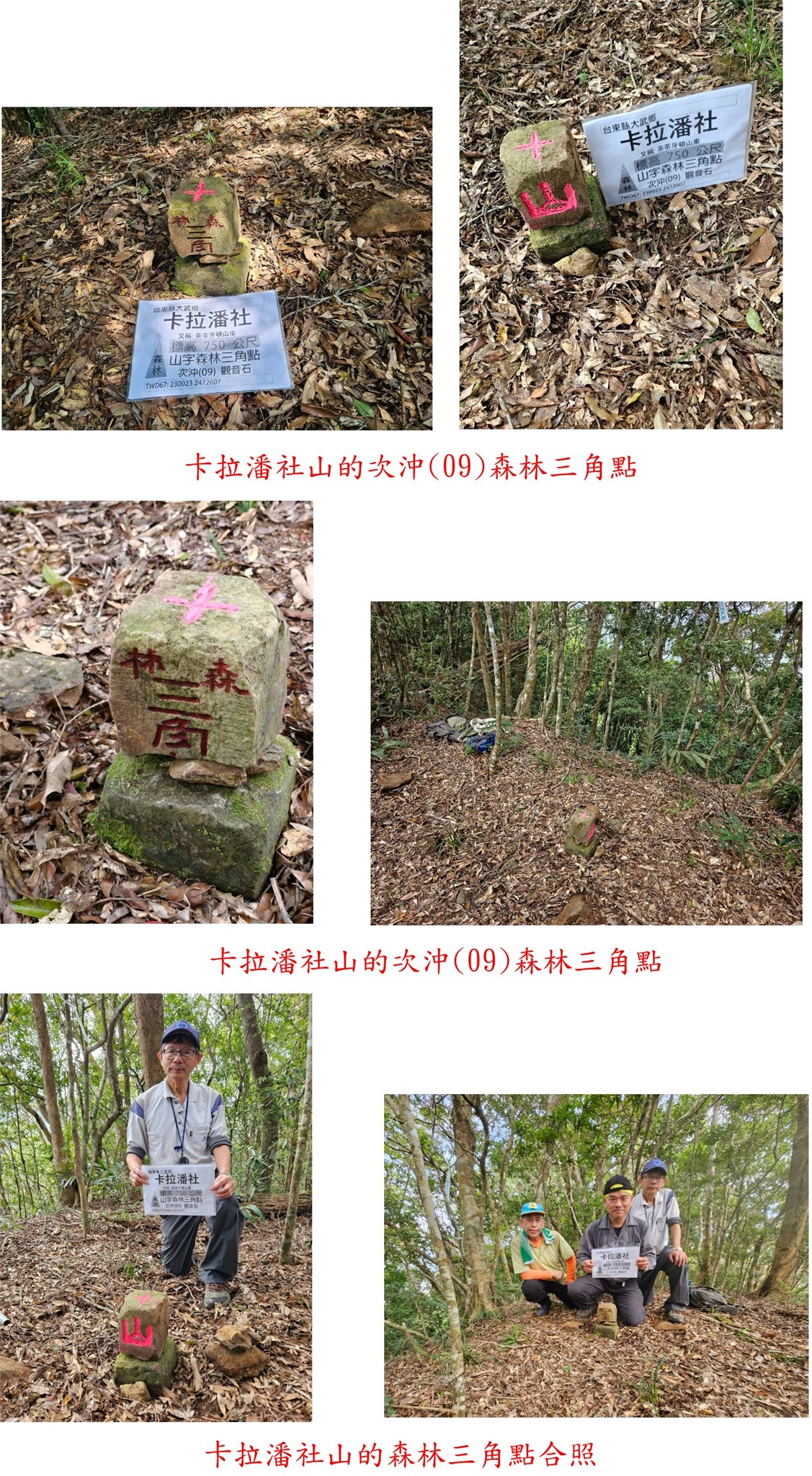 4、卡拉潘社山:又稱茶茶牙頓山東,位於台東縣大武鄉,標高750公尺,次沖(09)森林三角點;座標2300242472623