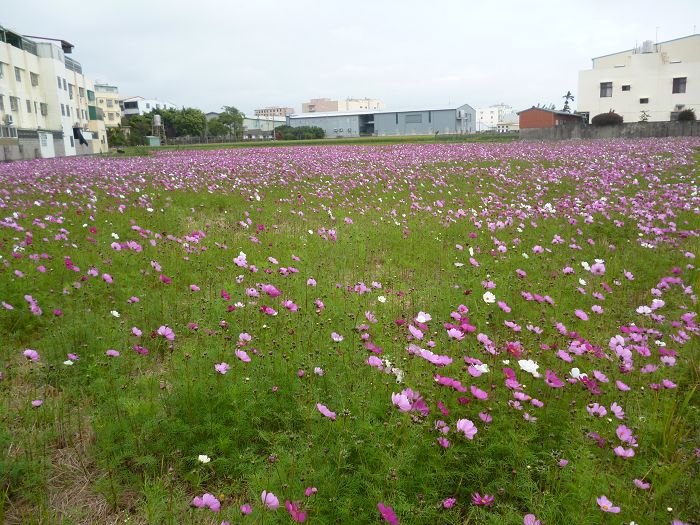 走神林路一段(中79線)往上員林途中的波斯菊花艷田景