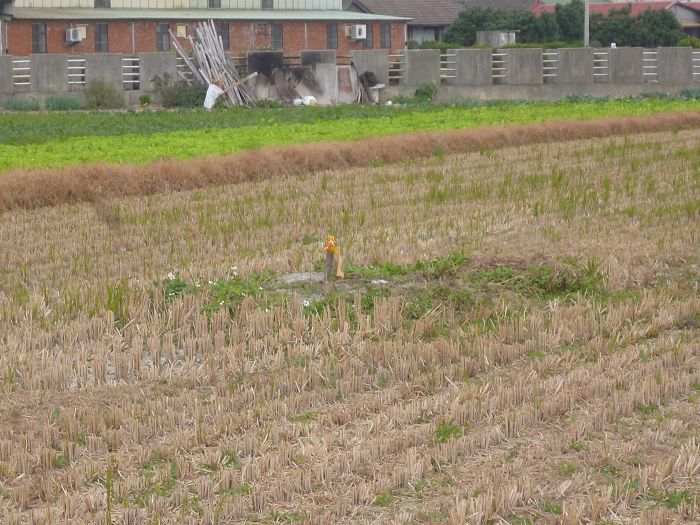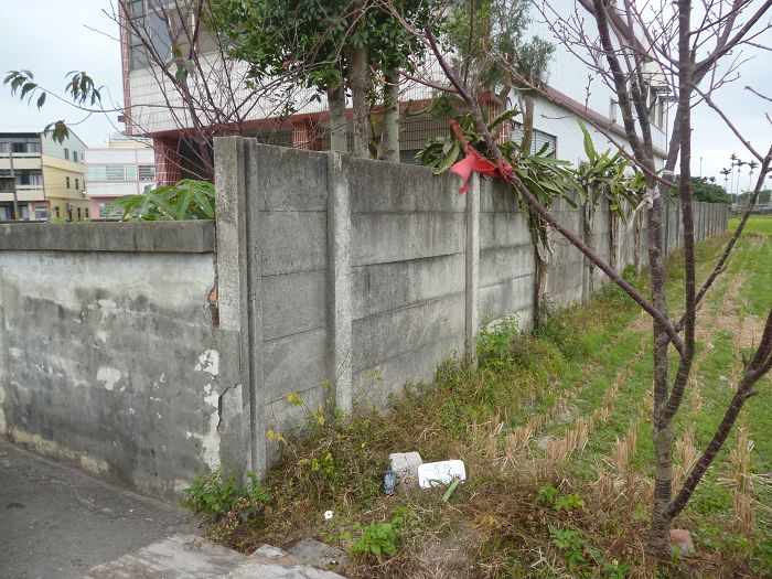 過仁和北路63巷後停車,可見左側田中央水泥基座