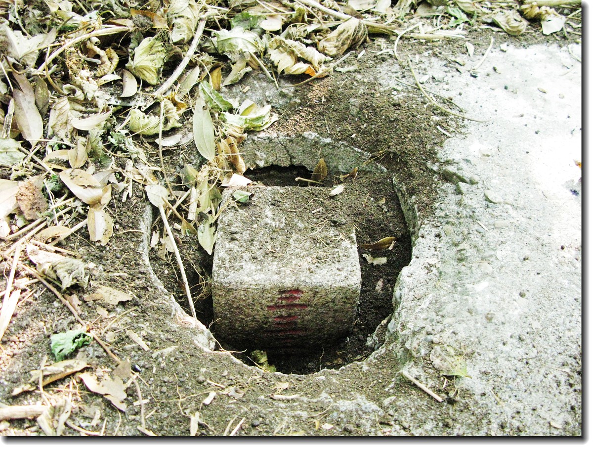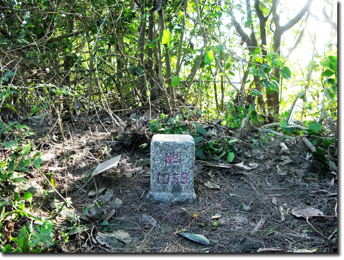 沿水泥路走約30~40公尺在民宅柵門前約2~30公尺左轉竹林小徑,沿小徑走到土丘頂即見蚊港二等基石。