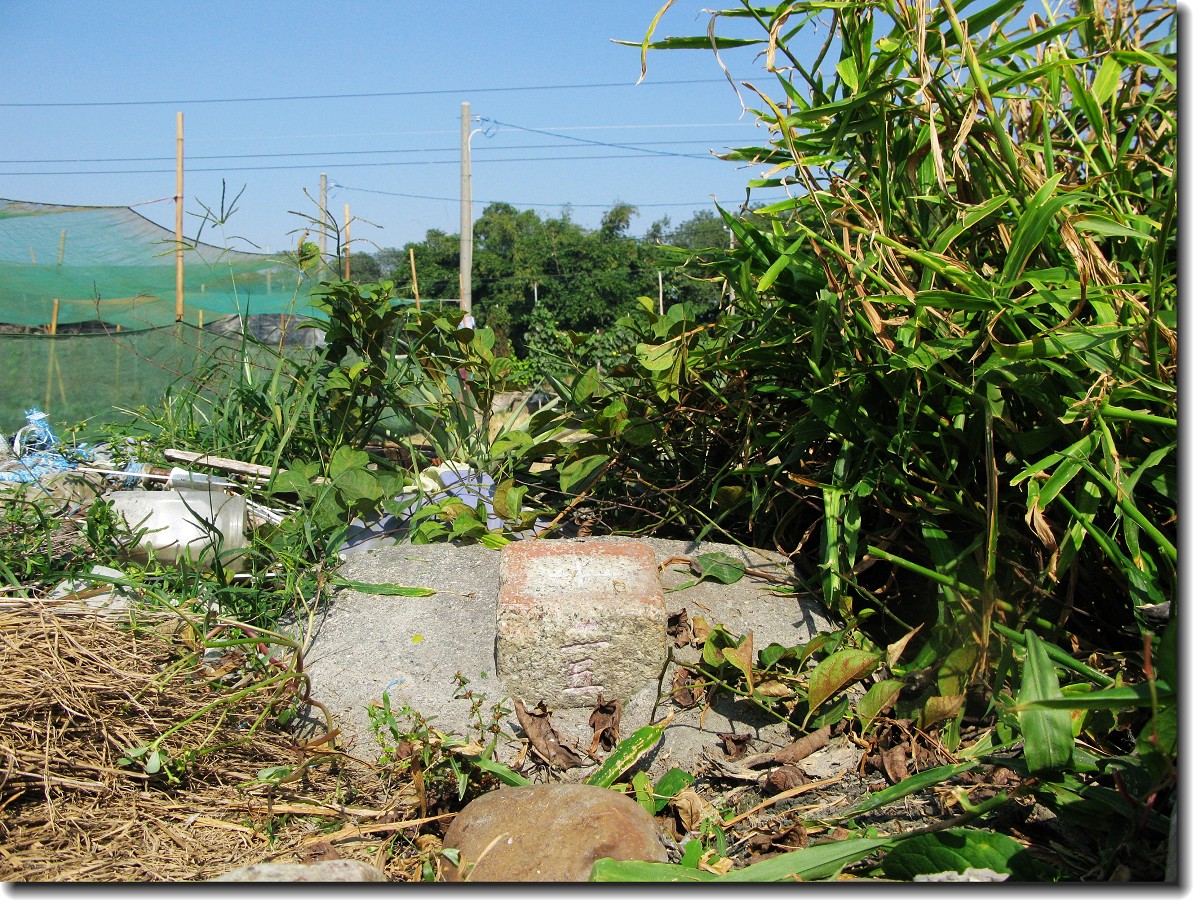 陳校長平安:我今日到雲林莿桐鄉賞花,順便繞過去把一顆你曾經遺漏的三角點找出來,轉角的電線杆已噴上三角點標誌,第二枝電桿的右邊是菜棚,右轉過菜棚(不到十公尺)右邊就是入口,我已插上竹竿並綁上布條動刀開路到三角點,您可以到莿桐賞花順便繞過去摸點。
