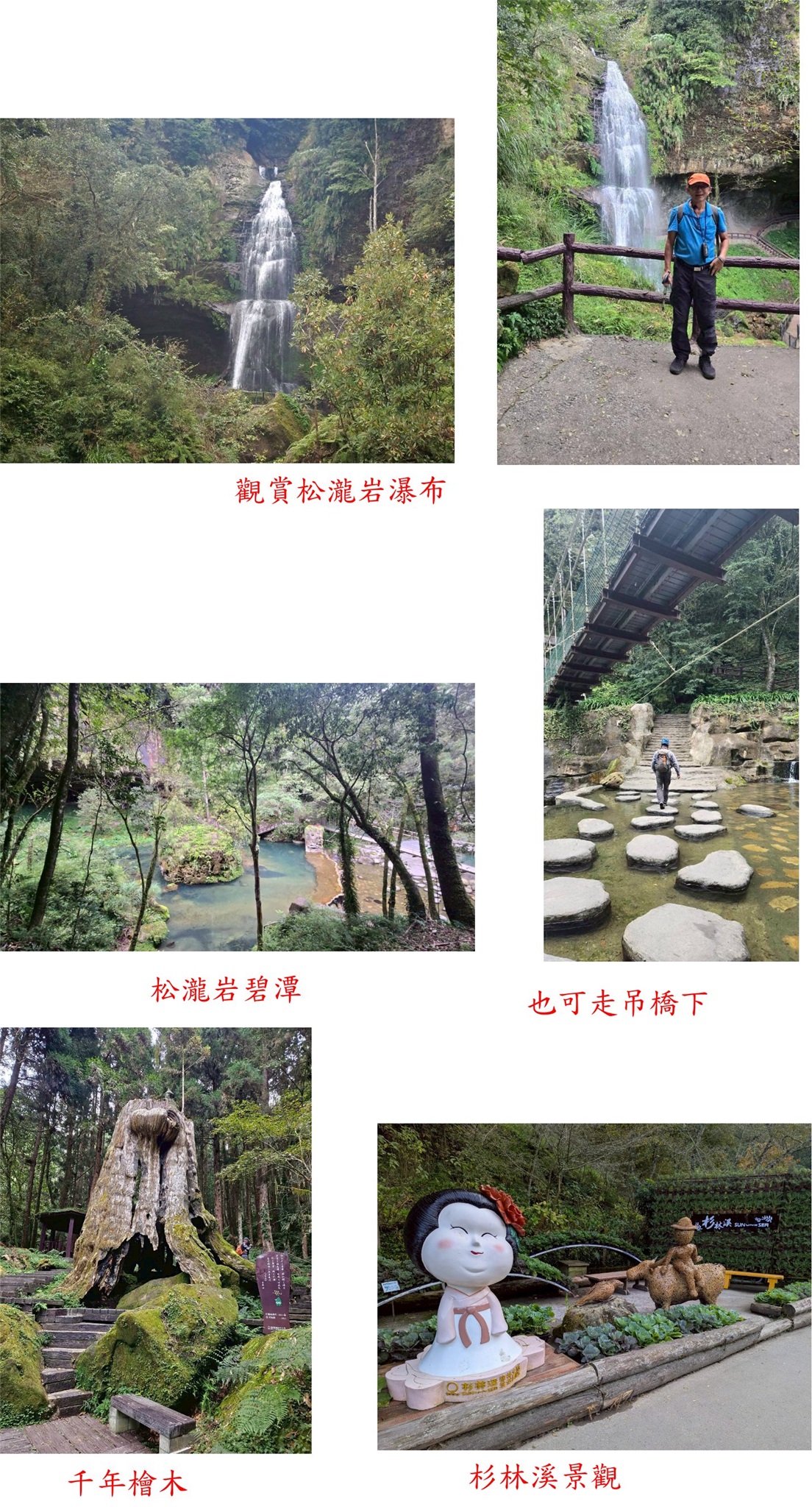 07:41松瀧岩服務中心,高1668公尺,取步道直行往松瀧岩不取,取左過九九吊橋後叉路,觀賞松瀧岩瀑布;左為樂山步道不取,取右步道往天地眼方向行、經先民隧道。