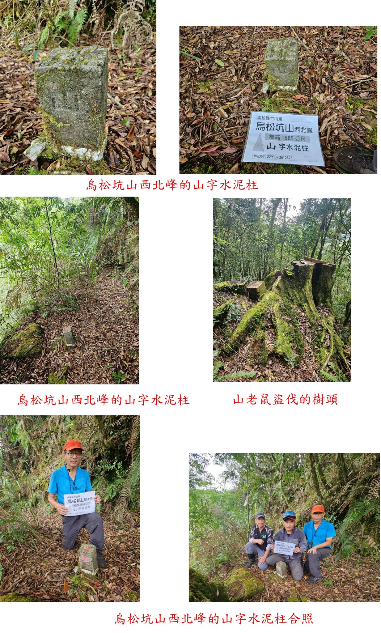 1、烏松坑山西北峰:位於南投縣竹山鎮,標高