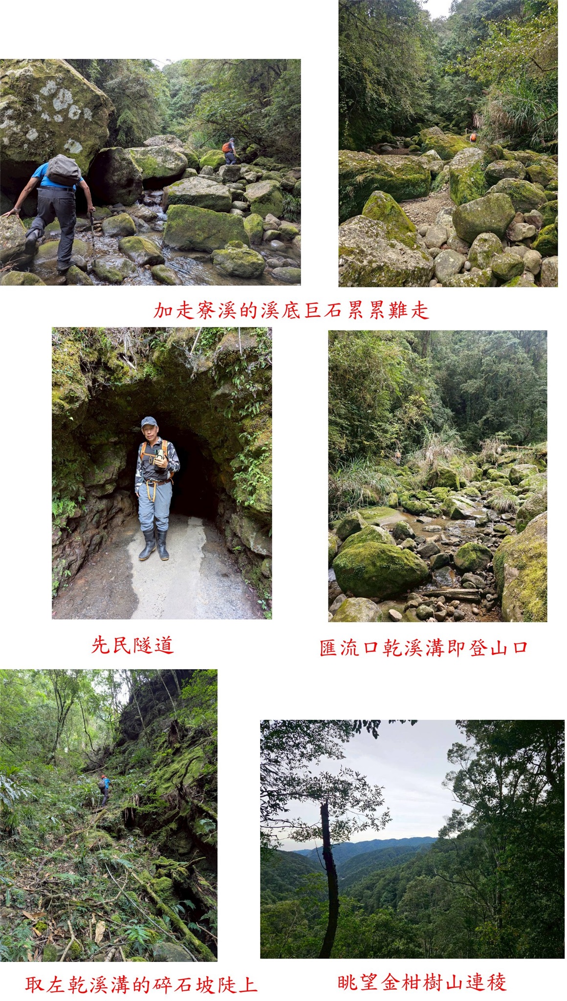 08:01回到加走寮溪的溪底,枯水期水量不大,溪底巨石累累且還有許多深潭左繞右繞,溪畔偶見老舊路條;此溪底此回係第3次,路況比8年前來差很多,溪底大走約300公尺。