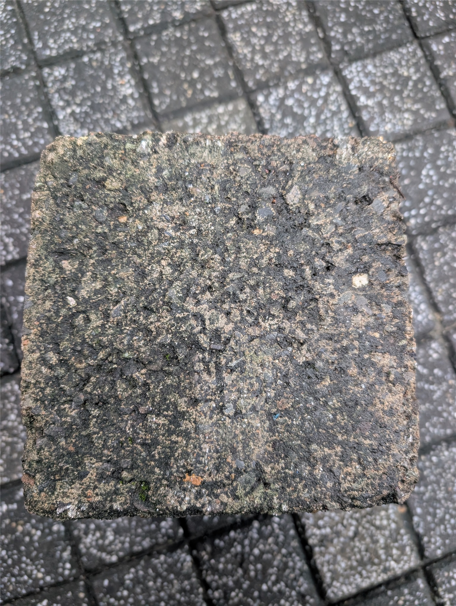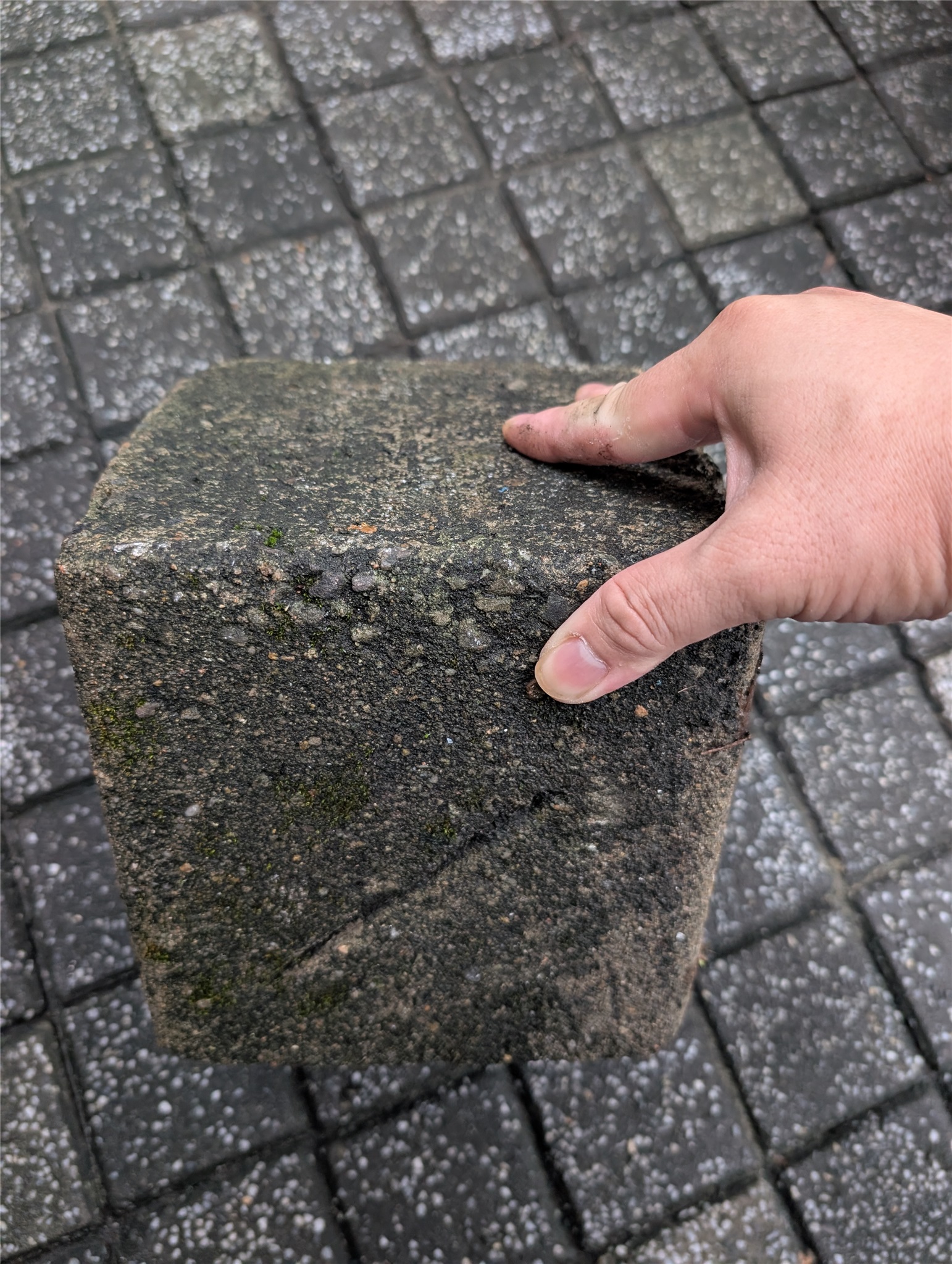 因為我不是山友,只是剛好獲知任教學校中有三角點這個訊息,所以去尋找了一下。三角點材質應該是花崗岩,但現在看起來這石塊比較像是水泥,所以猜測是否被水泥包覆,後續應該就是拿磨砂機做中間部位的研磨了~