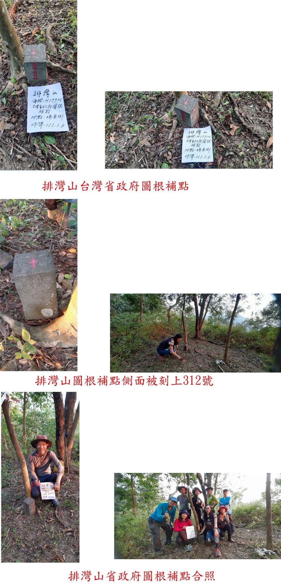 4、排灣山:位於屏東縣瑪家鄉,標高190公尺,台灣省政府圖根補點;座標211138 2503539。