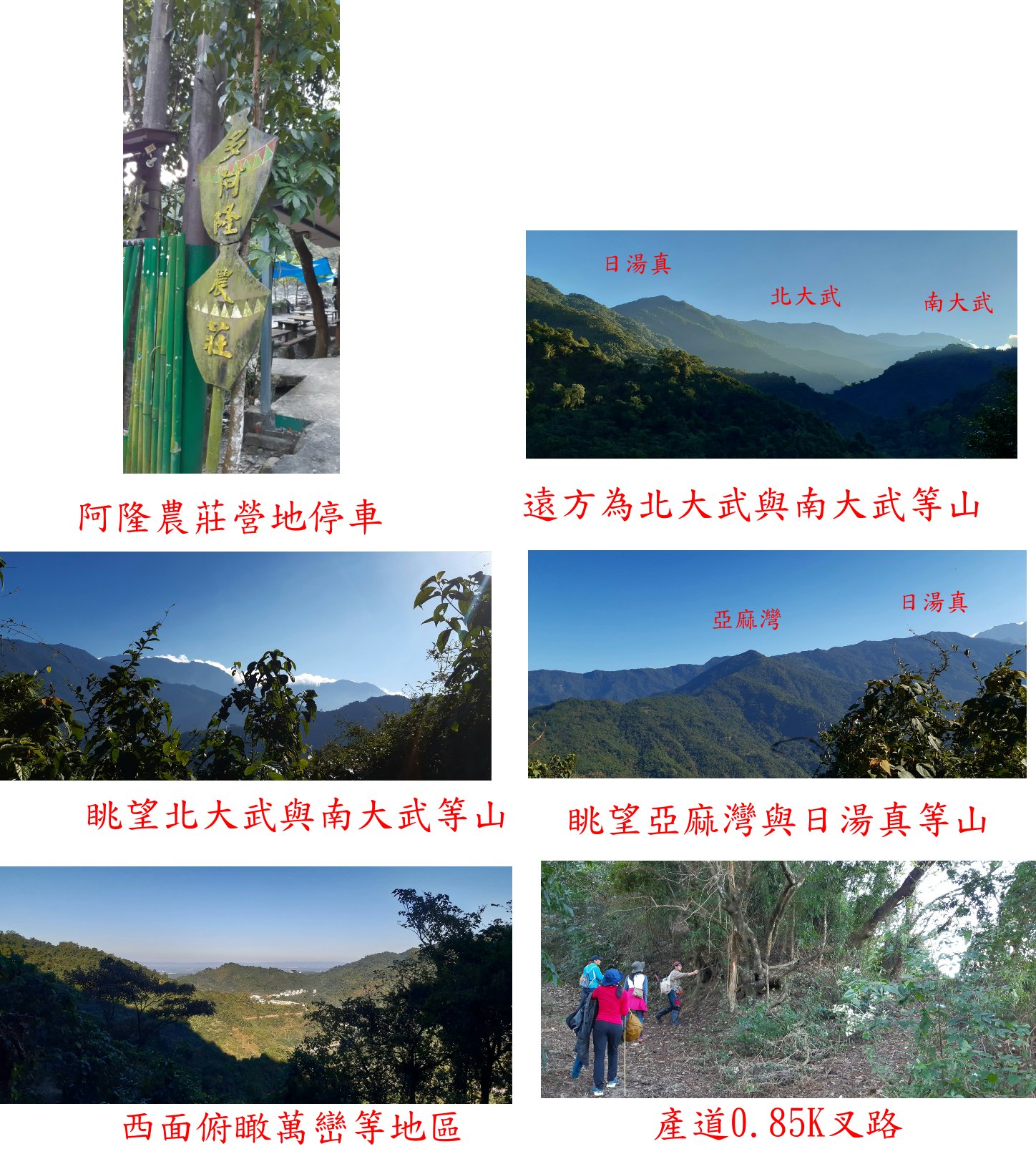 07:35出發,由農莊後方上山土路走0.65K,機車應可通行,沿途視野超好,眺望亞麻灣與日湯真等山,遠方為北大武與南大武等山。