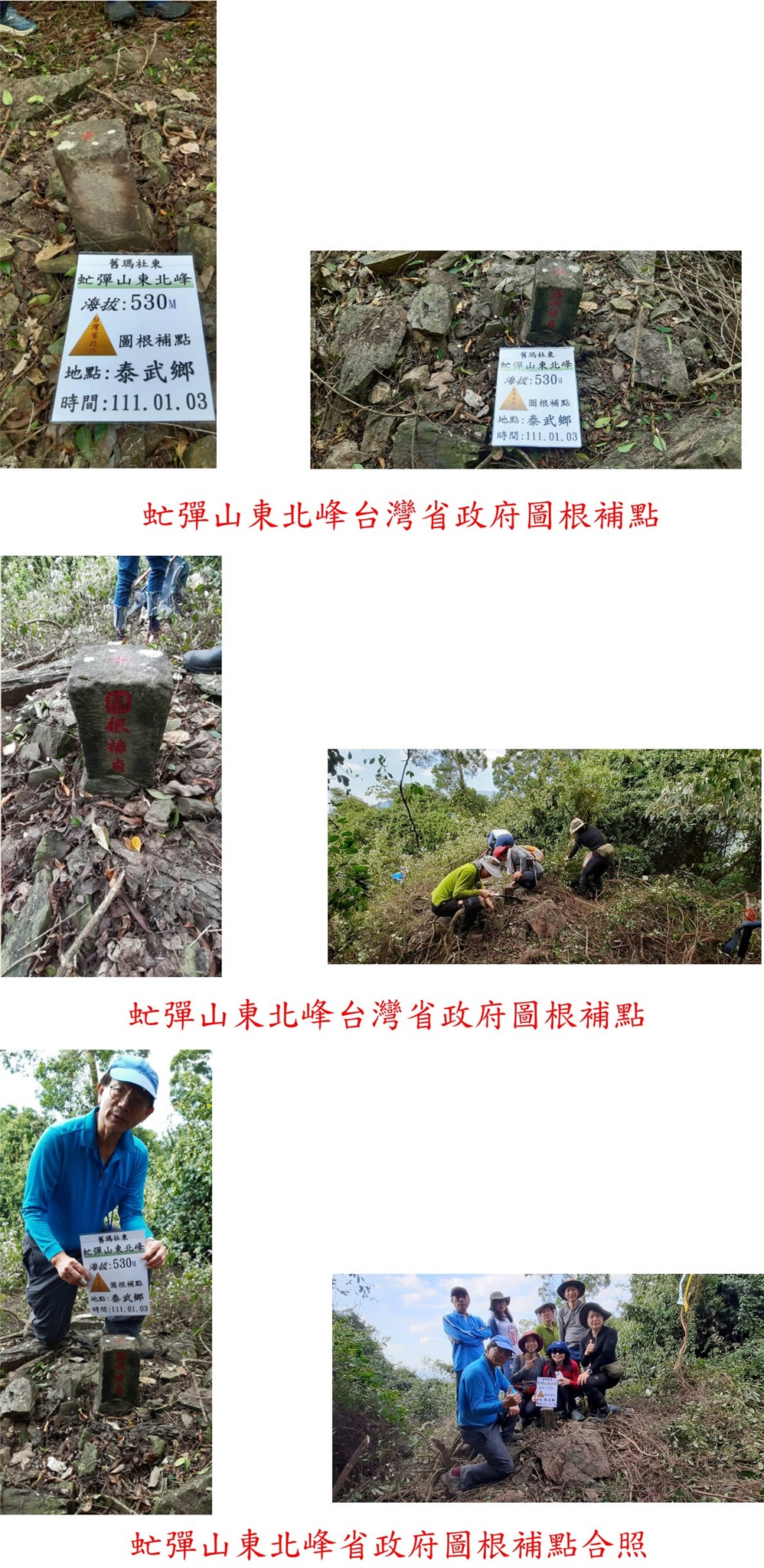 2、虻彈山東北峰:又稱舊瑪社東,位於屏東縣泰武鄉,標高530公尺,台灣省政府圖根補點;座標214530 2501758。
