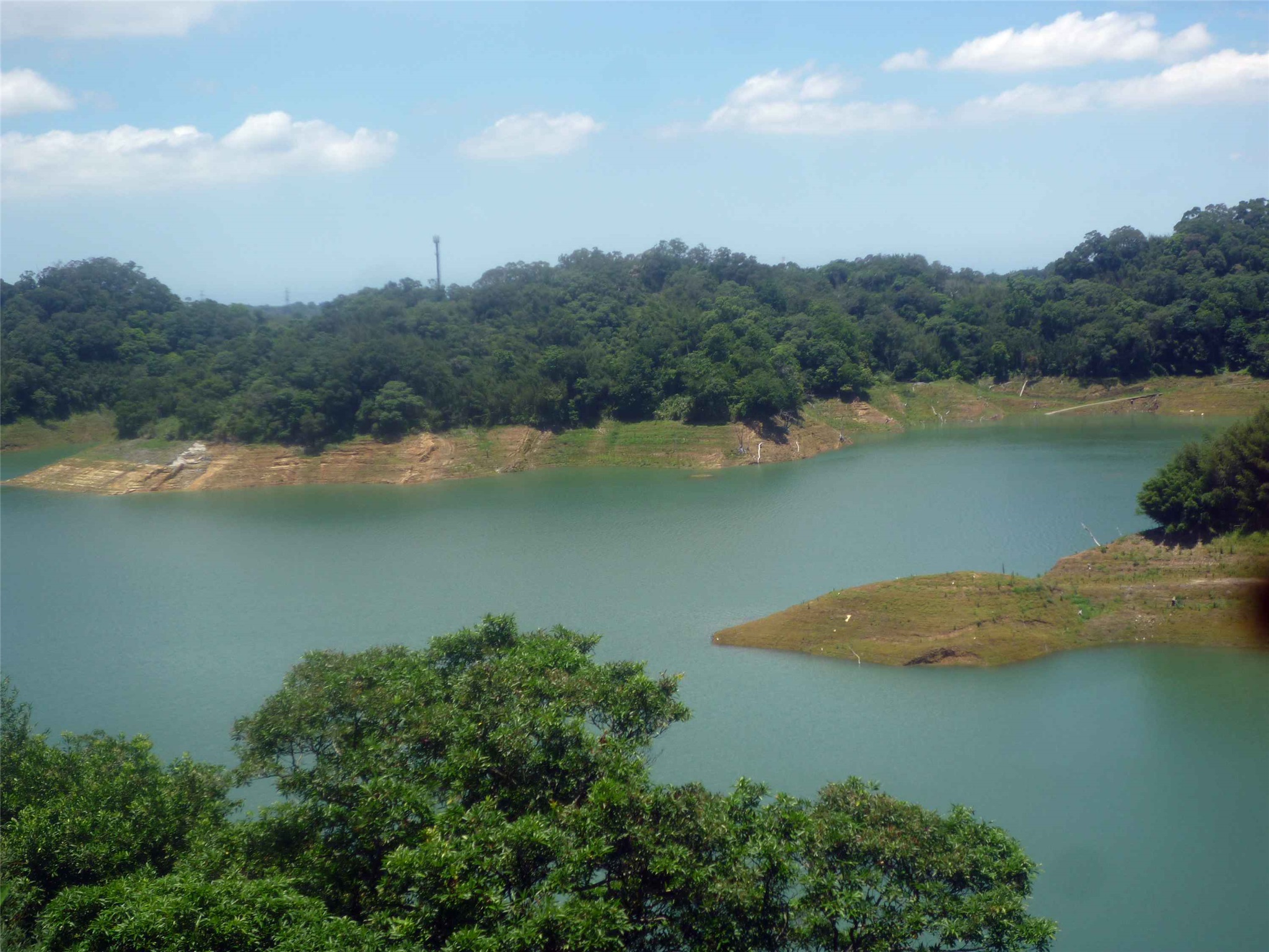 7寶山第二水庫大壩溢洪道上,更可見波光粼粼,山明水秀