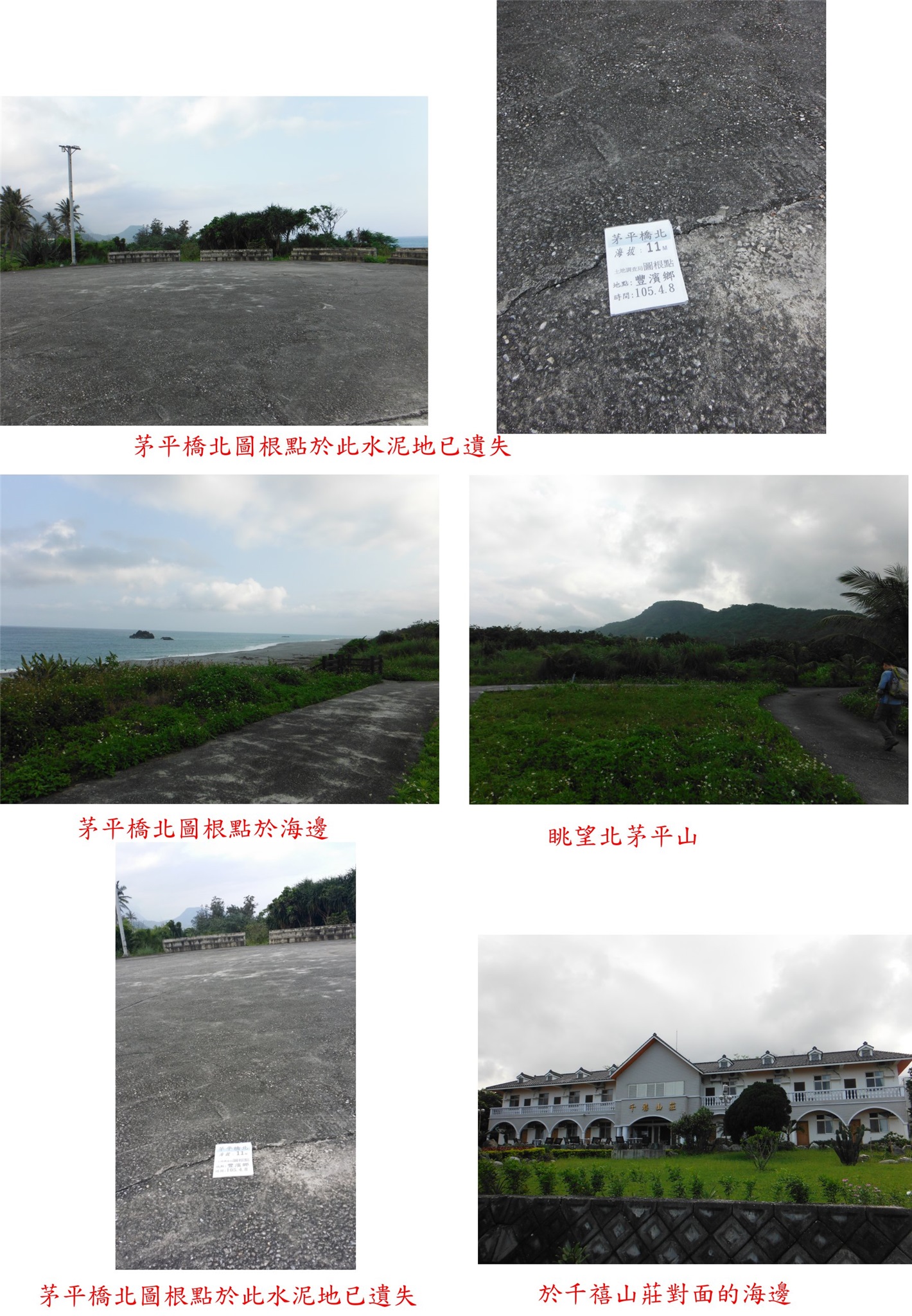 3、茅平橋北:位於花蓮縣豐濱鄉,標高11公尺,土地調查局圖根點已遺失。