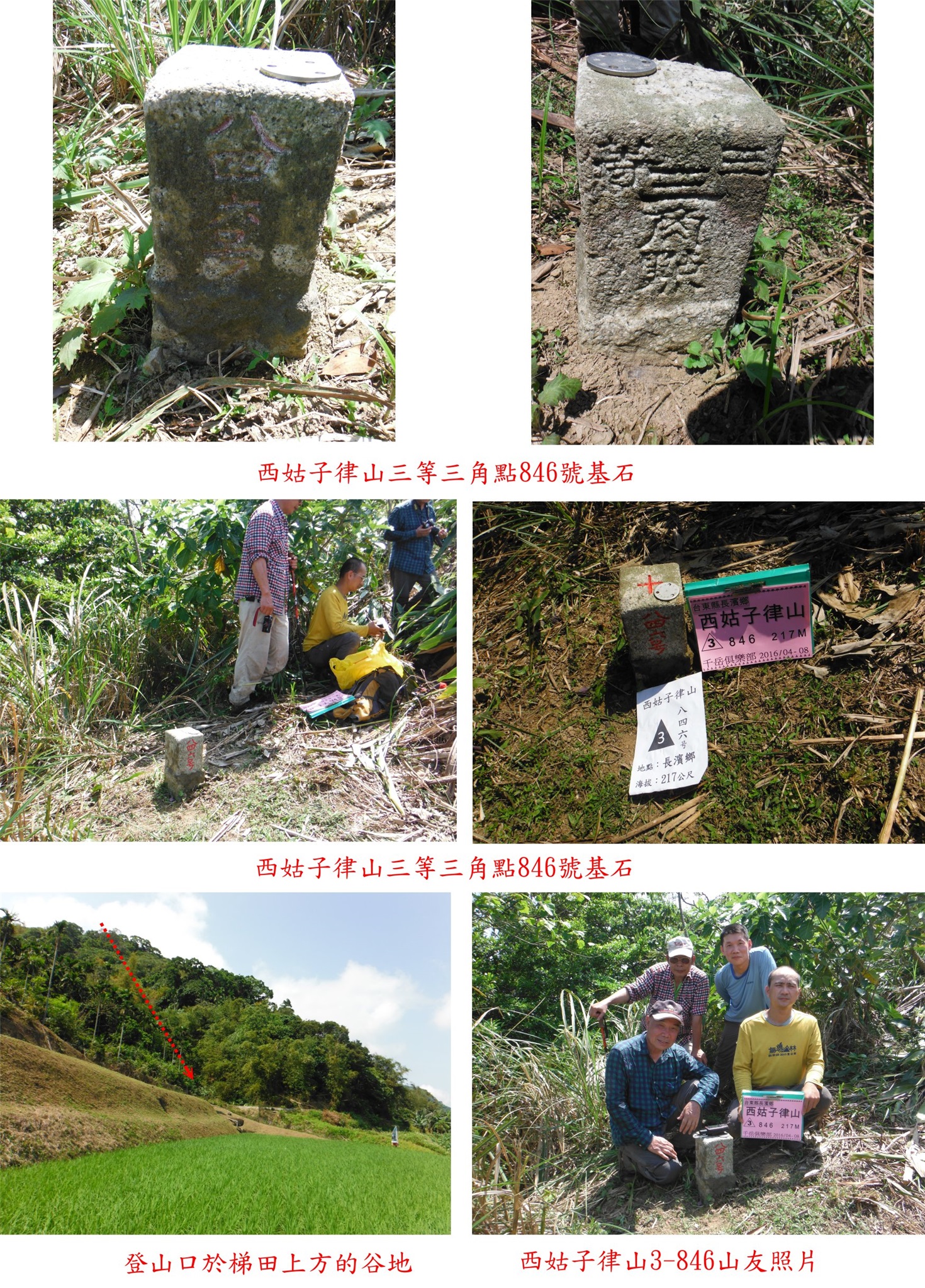 1、西姑子律山:位於台東縣長濱鄉,標高217公尺,三等三角點846號基石。