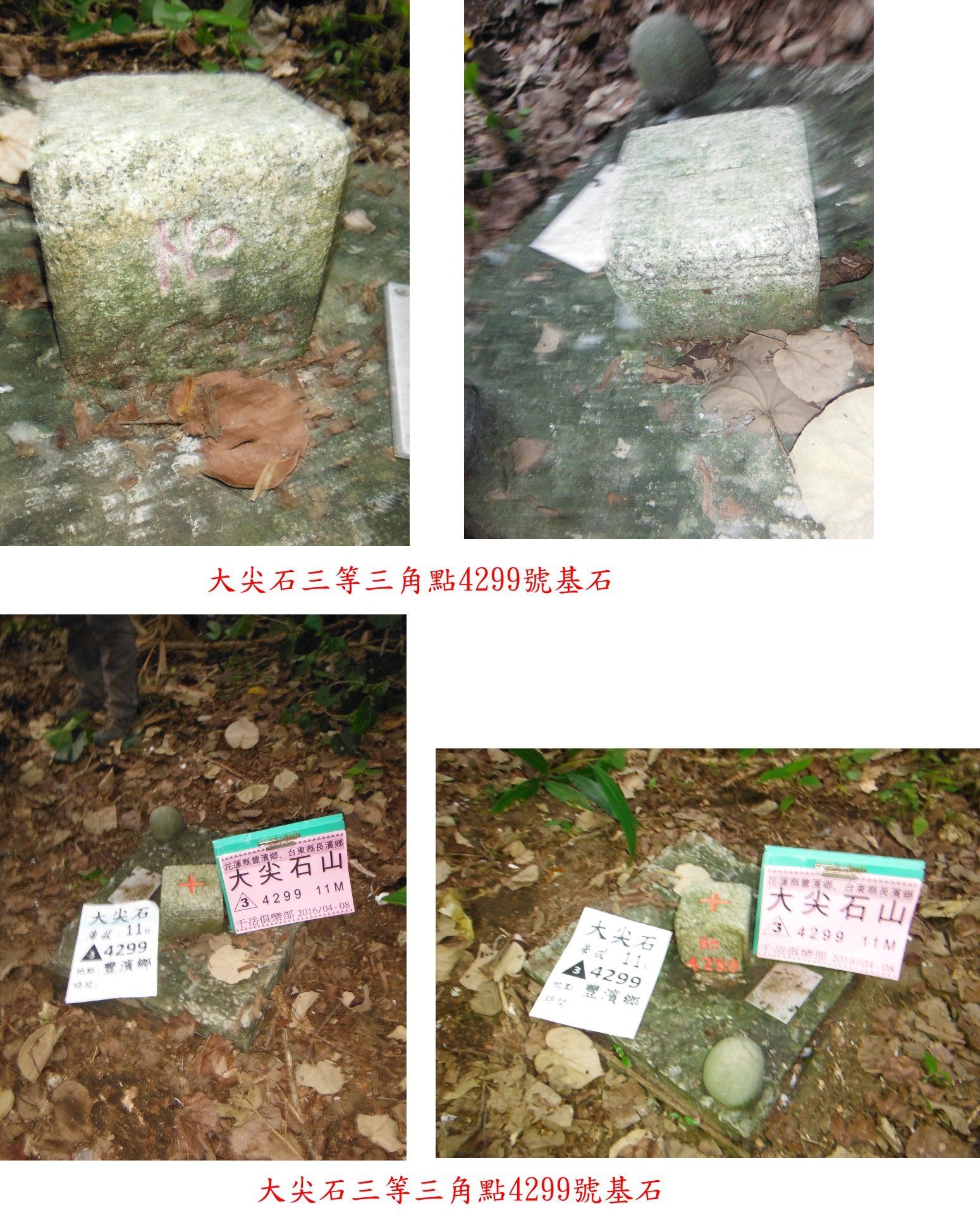 ◎花東基石之旅第一天,計走了8座山(或基石),如加計南溪鑛1074應為9顆基石,但只找到6顆基石,扣除大尖石3-4299已去過,今日只有5顆基石入帳,倘加計前晚(4/7)米崙內部082水準點,亦只有6顆基石入帳。