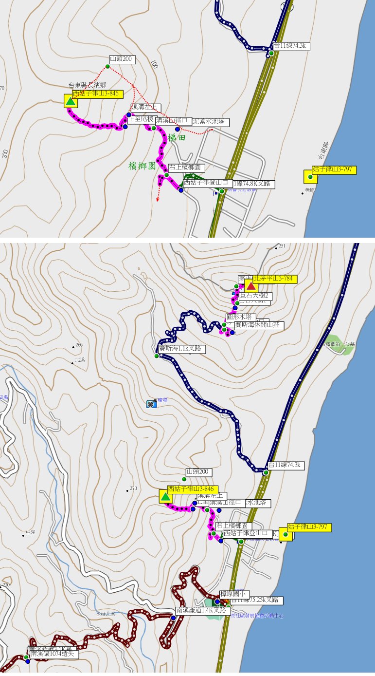 西姑子律山、茅平橋西、茅平橋北(未成)、南靜埔山與姑子律山-花東(長濱與豐濱)基石之旅1-2