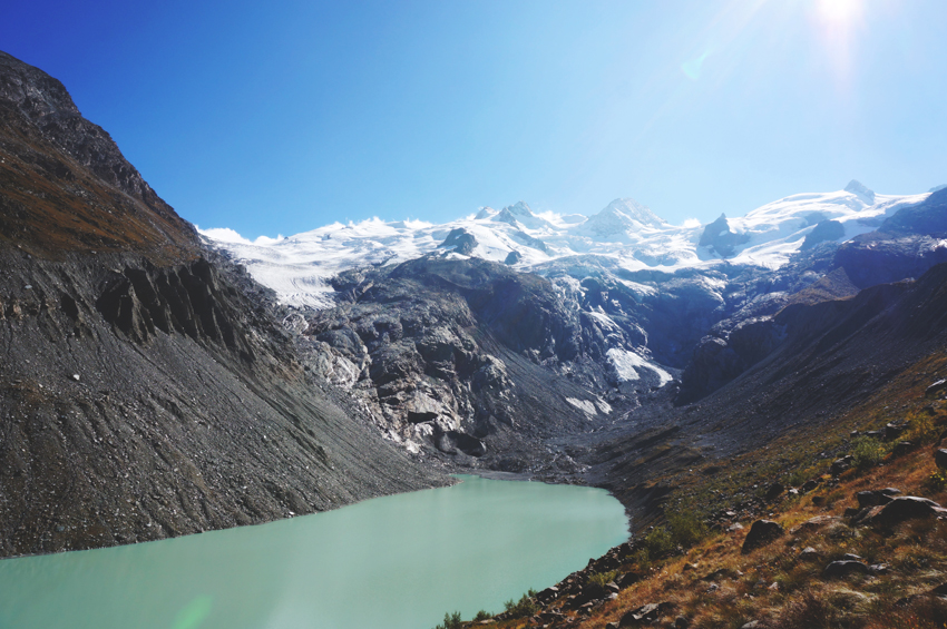 從Coaz-Hutte SAC 山屋下到冰川湖泊的路線屬於藍白,有些許危險路段,要多注意安全。這是我第一次看到高山冰川跟湖泊,心裡非常震撼跟感動,尤其看到高山的冰川崩落後,融解的雪水匯流成牛奶綠的湖泊,湖泊內的水接著往下開始流動,沿途混合其他溪水,因為地勢落差形成奔流的大河流,便不再充滿綠意生機的大地上,接著在分出支流穿梭在森林當中,前往各自的目的地,親眼走過看過這樣的循環,真心感到佩服與感動。