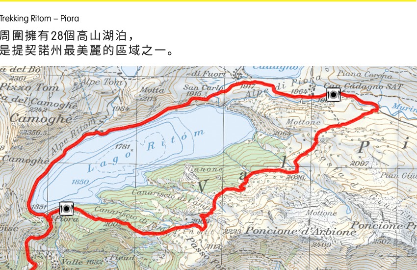 參考路線- Lago RItom, 1850m - Lago Cadagno, 1921m - Lago Tom,2022m,
