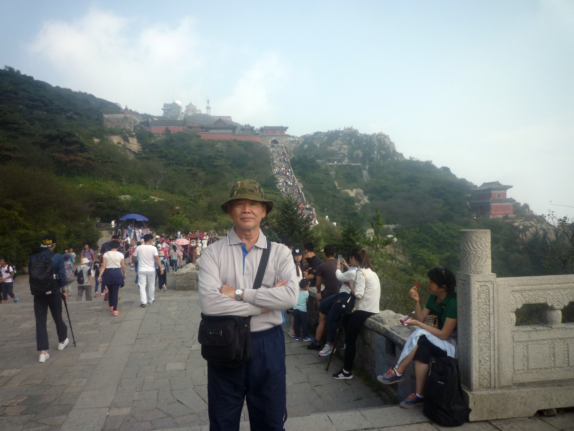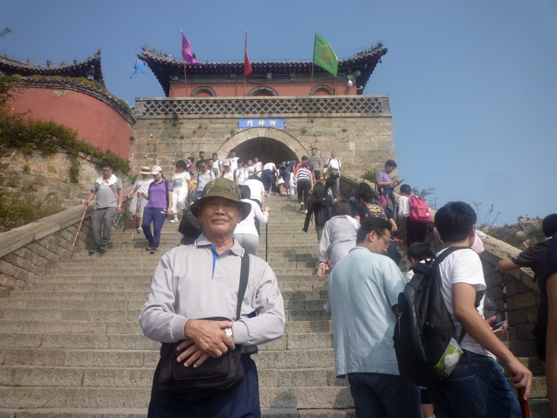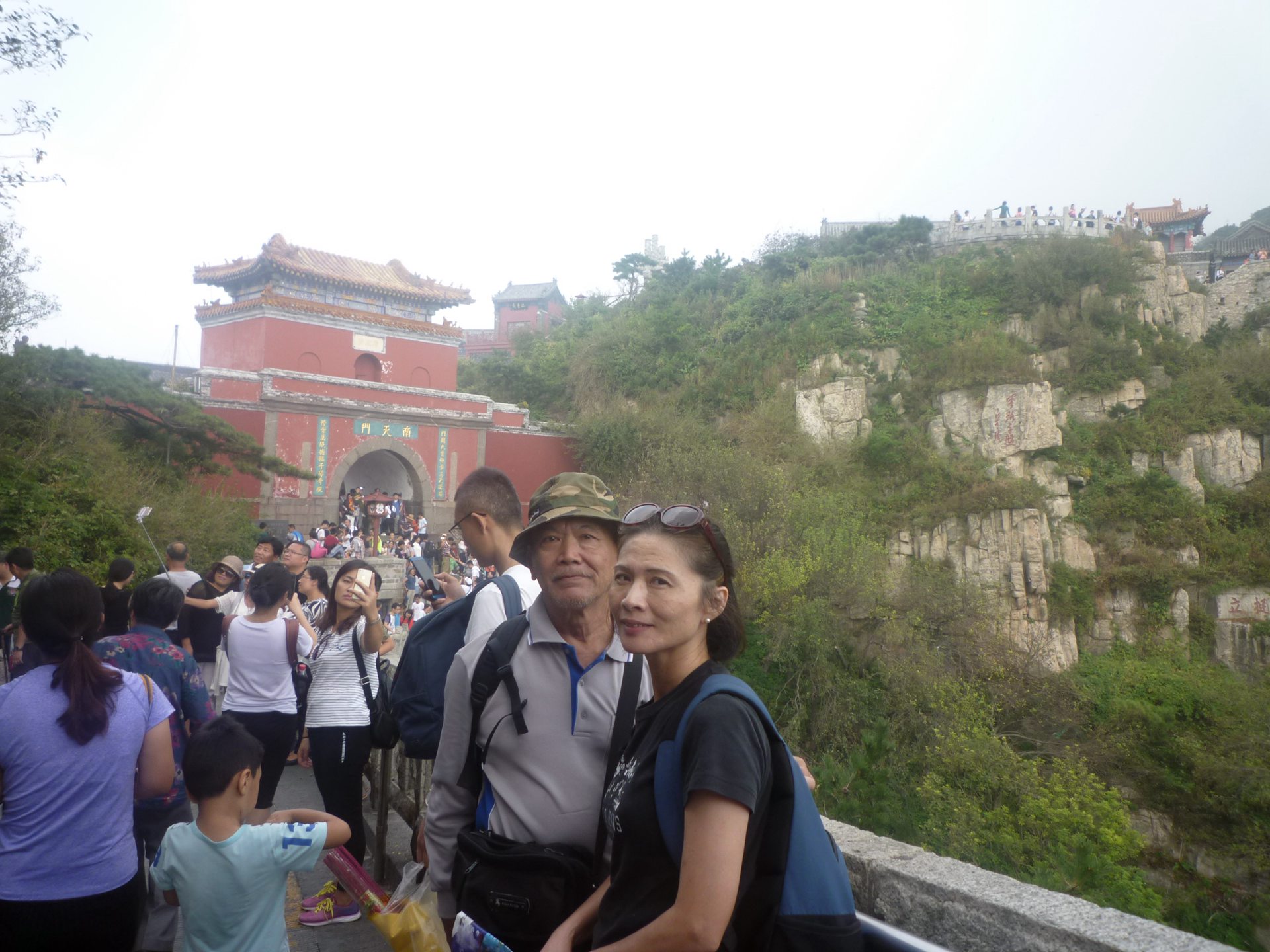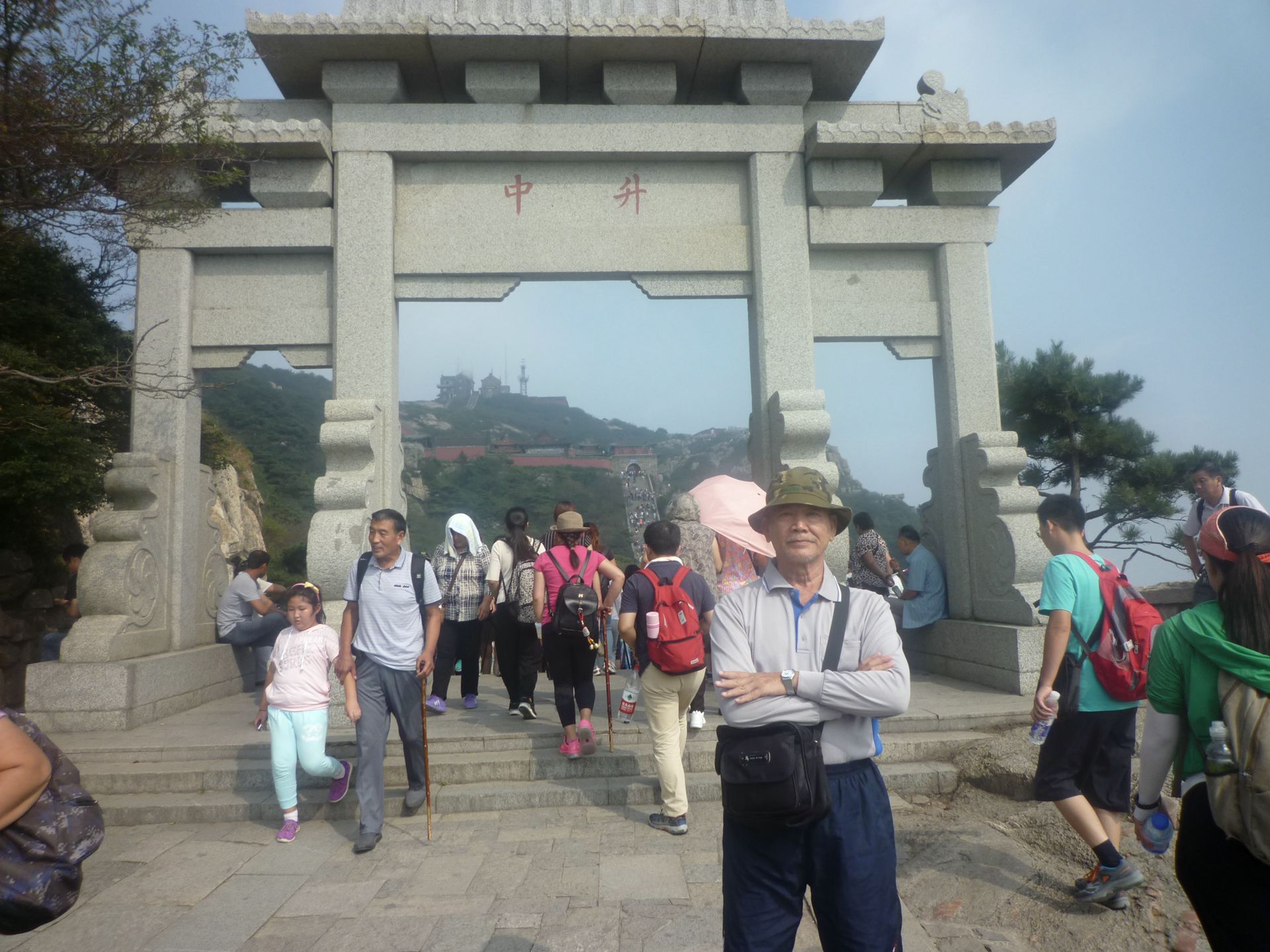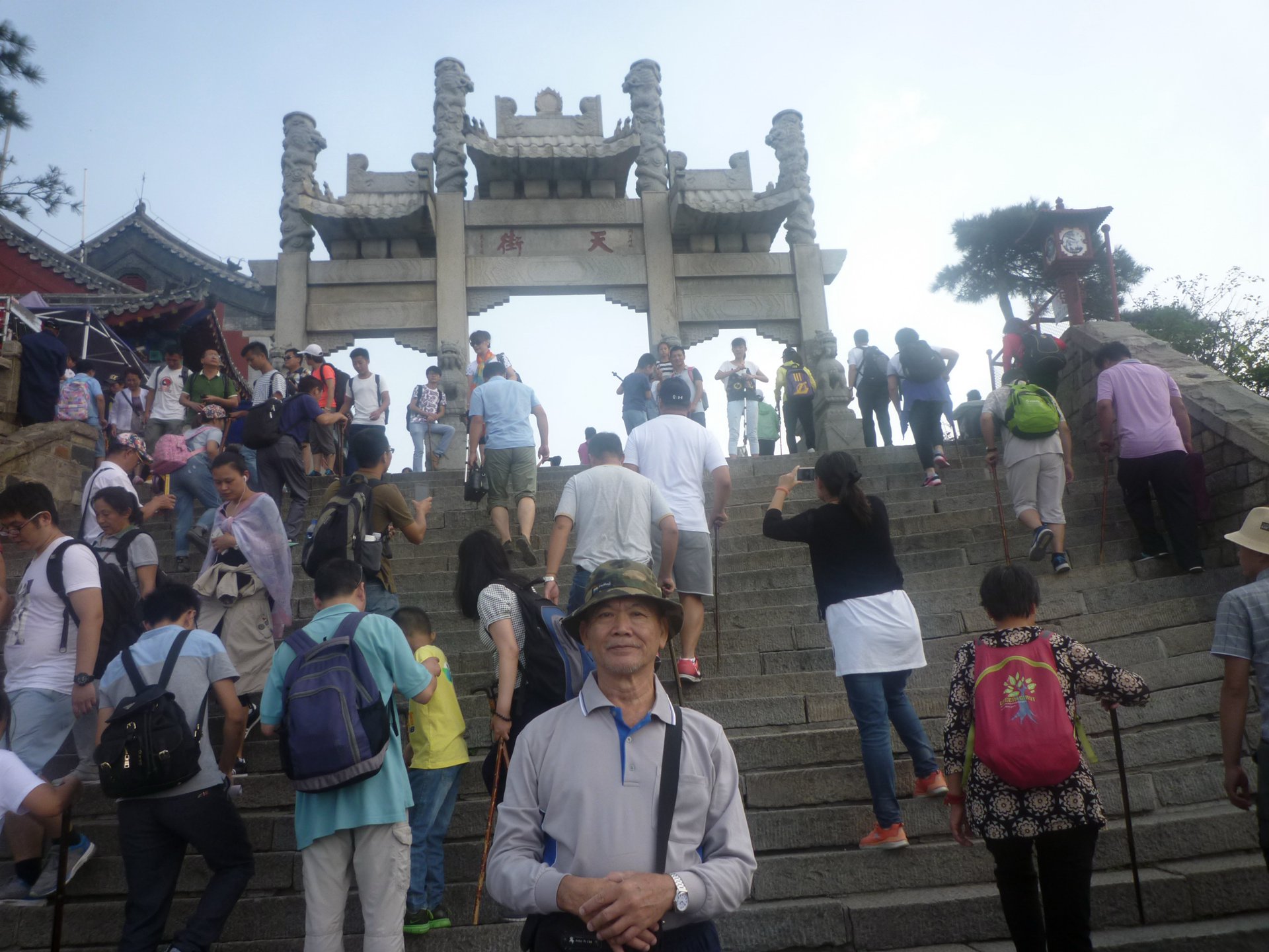 8泰山南天門岱頂上,豈緣乘興凌千仞,遊客如織朝聖山