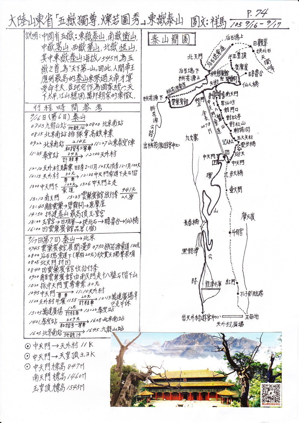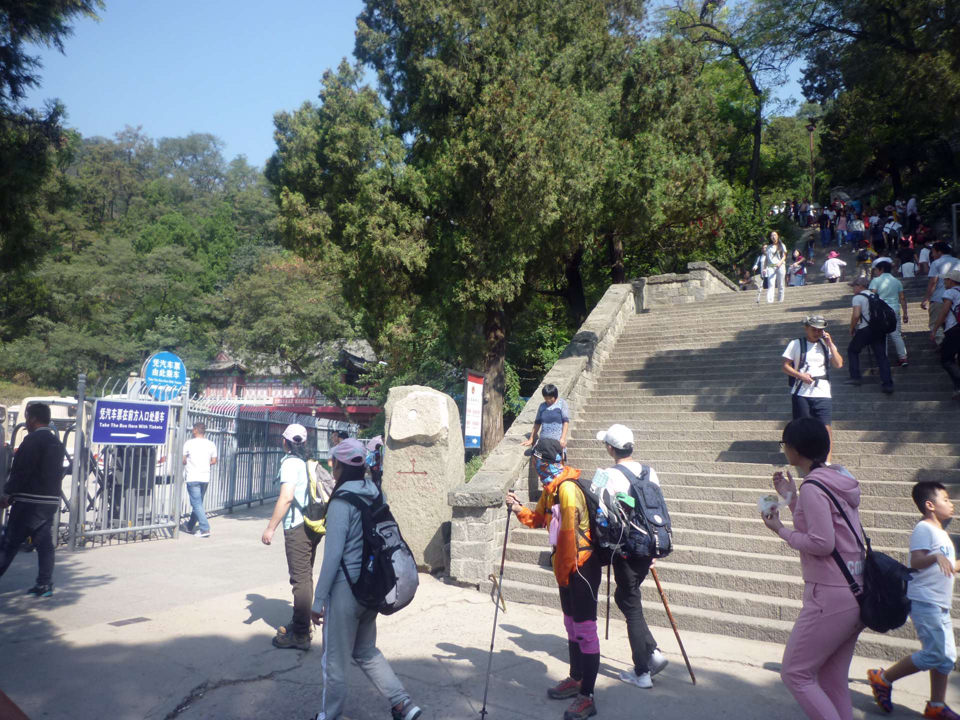 30泰山中天門搭專車至中外村11K,中天門至玉皇頂3.3K