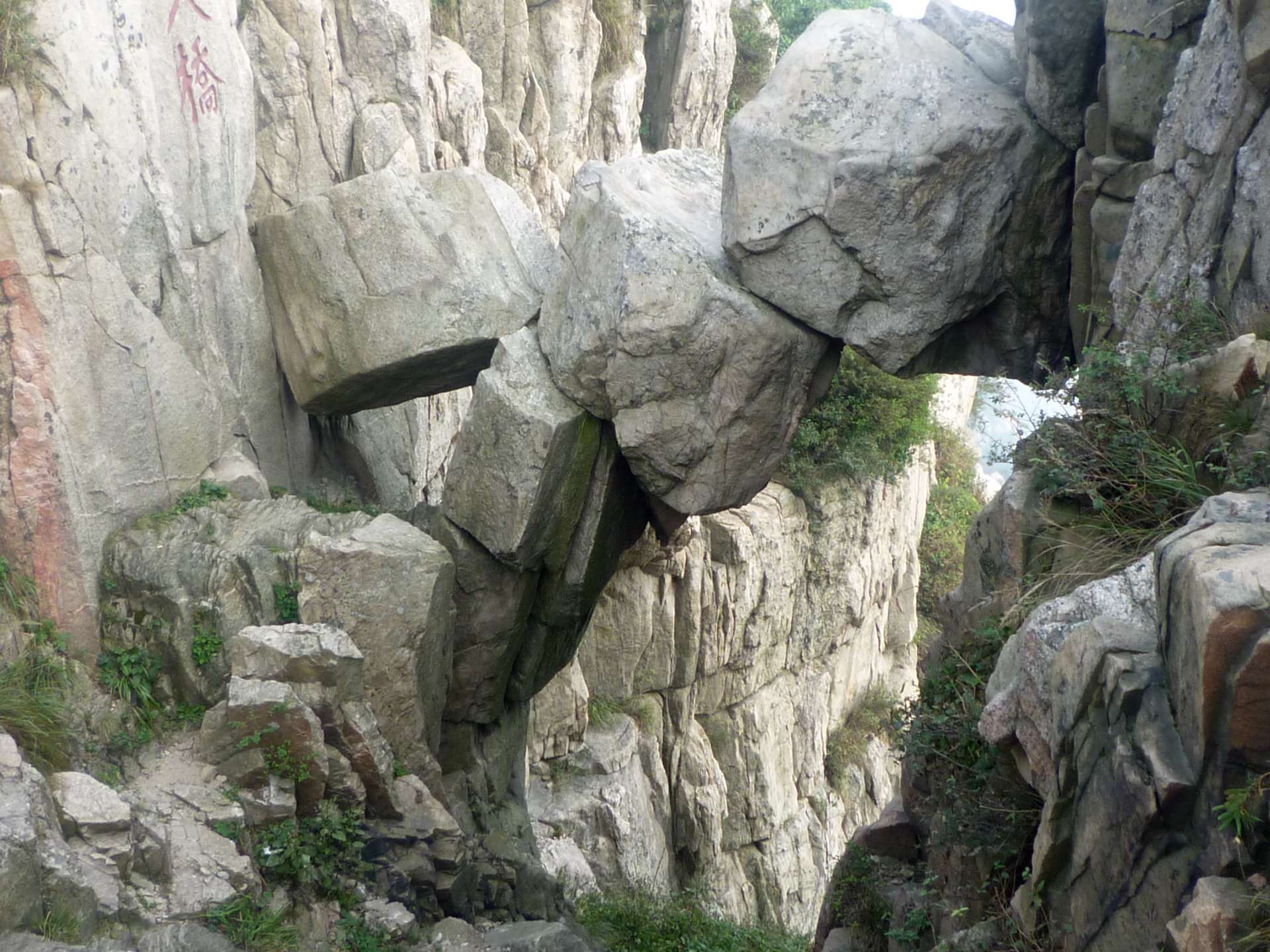 21泰山巧奪天工仙人橋,三塊巨石巧接渾然而成的地質奇觀