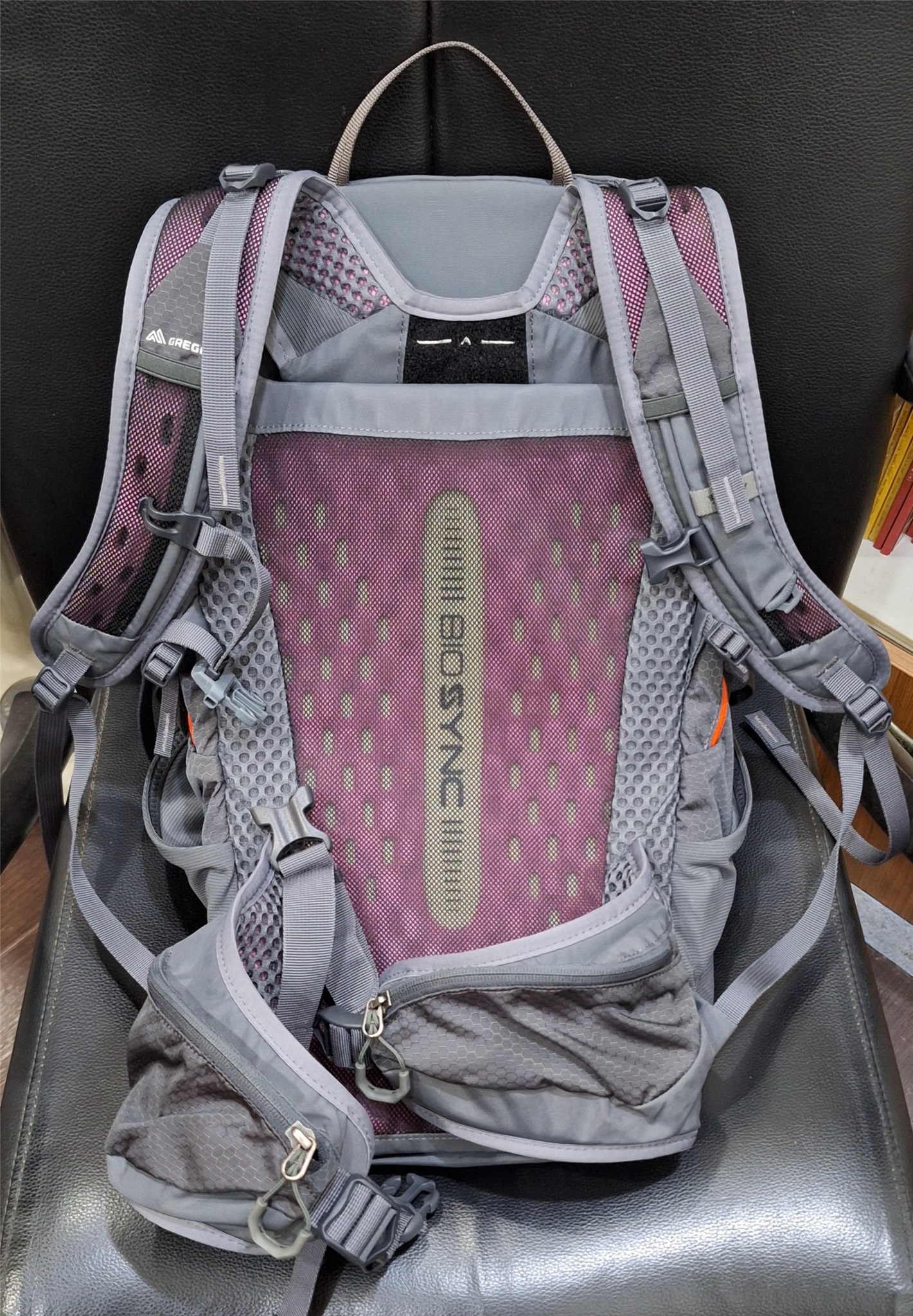 1、背包九成新,乾淨無污痕,無任何破損;此款登山包雖標示22公升,但容量並不小(有獨立水袋分層),分隔層多,便利分類及拿取。