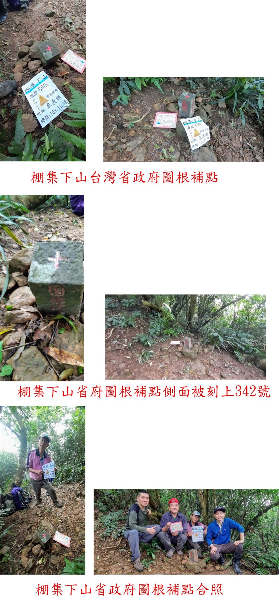 08:40△棚集下山,標高814公尺,台灣省政府圖根補點,側面被刻上342號;基石埋於山徑旁斜坡上,毫無山形可言且無展望,11年前登棚集山走另一平行路線錯過此點,只好再跑一趟來補,上山走1小時又20分鐘。
