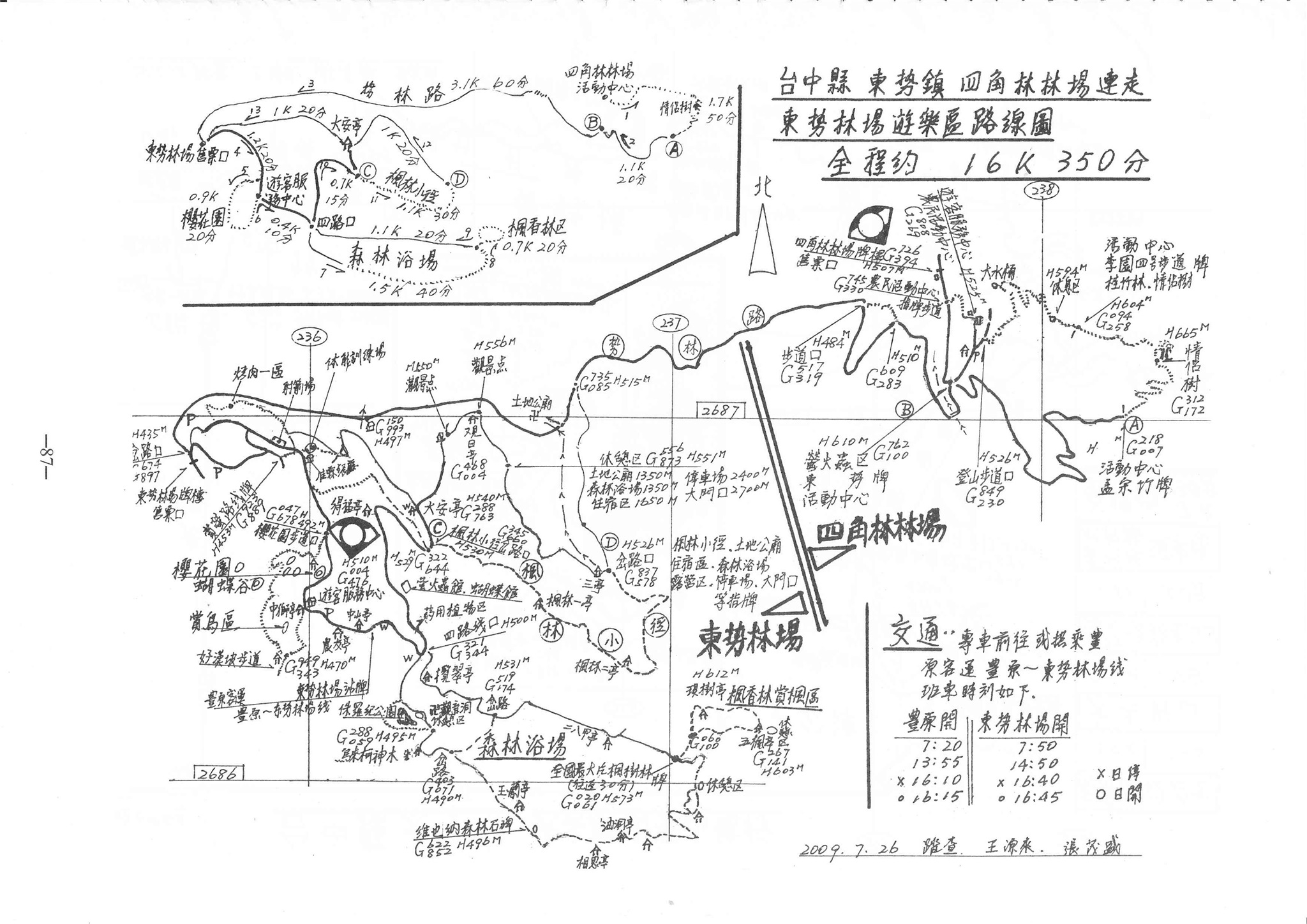 (十087) 東勢鎮 四角林林場連走束勢林場遊樂區路線圖