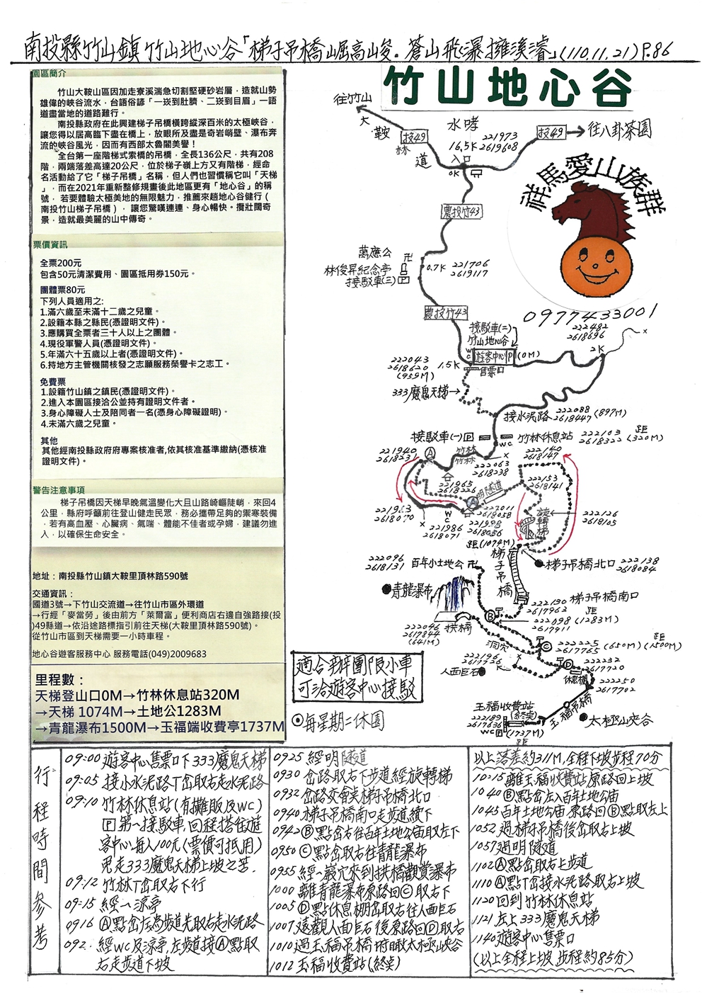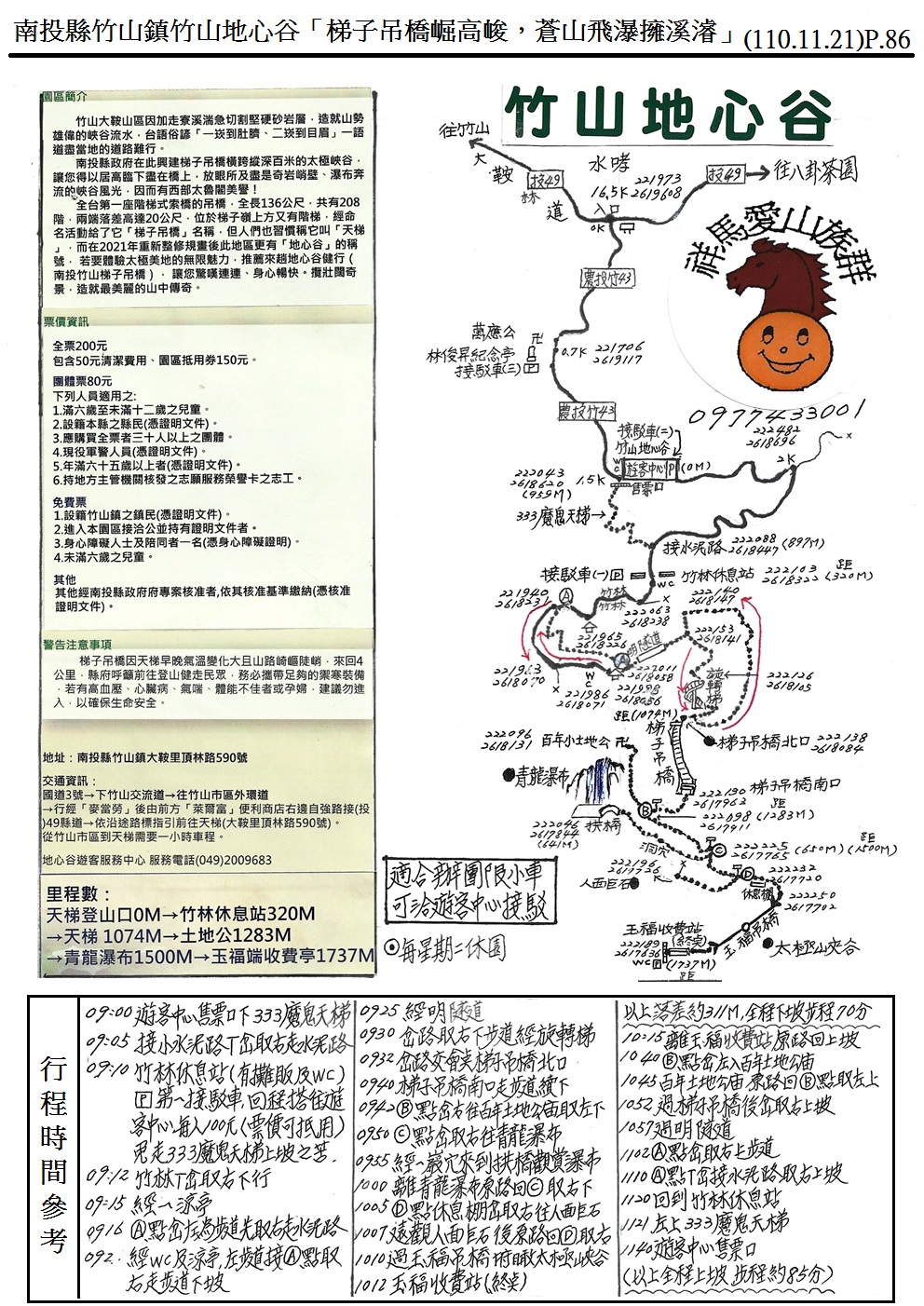 1竹山走投49鄉道頂林路往大鞍,在里程16.5K岔,取右走農投竹43道路往竹山地心谷