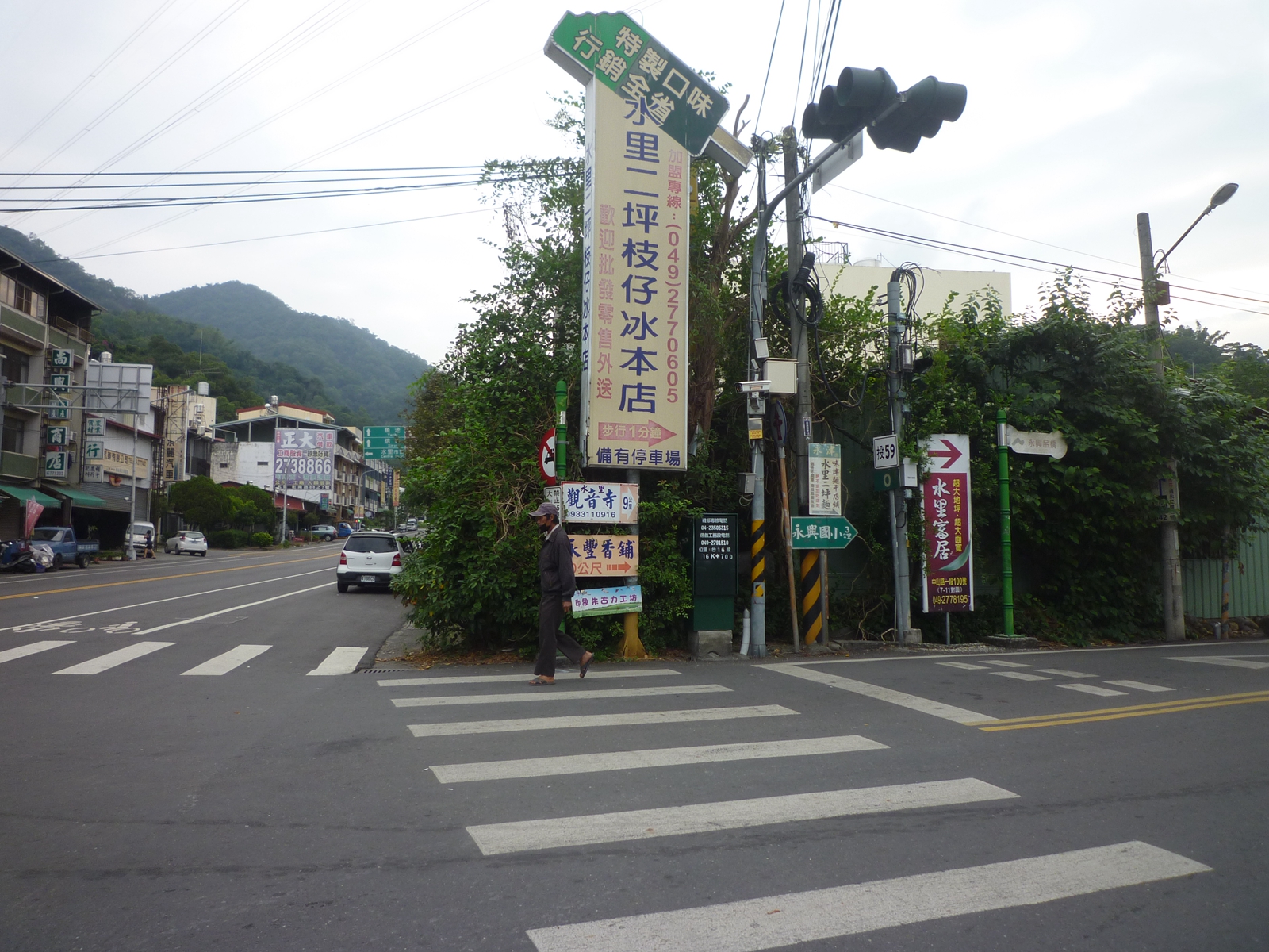 1水里走台16線往蛇窯,在里程16.7K十字路岔,取右走投59鄉道往永興神木