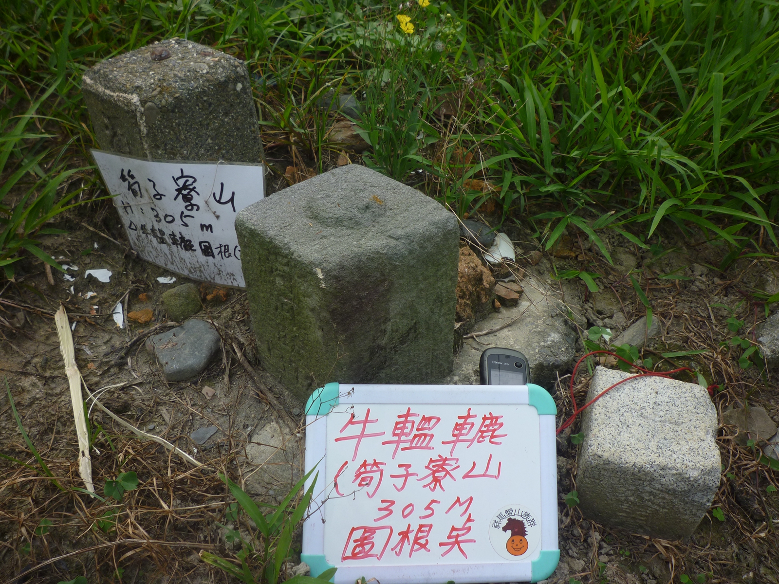 4牛轀轆又叫筍子寮(標高305M,土地調查局圖根點及水利濁河斷139和左濁139三座併立),座標:235390.2631481,三座基石在開基廟斜對面