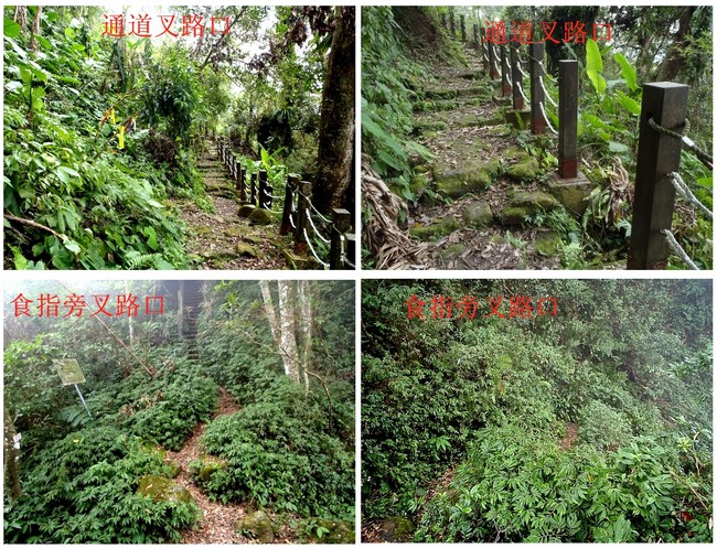 而且只有西側叉路口, 有山路可直下至盤古廟登山口 (但下山處,並無任何標示).