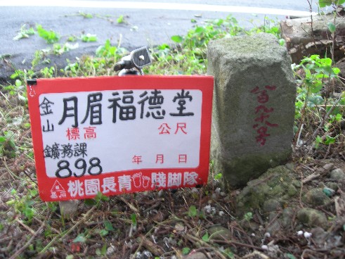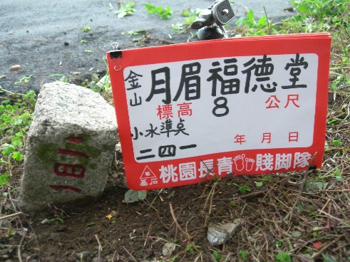 月眉福德堂:標高約8公尺 小水準點 第二四一 座標312525,2790252 (金山)