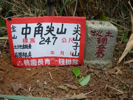 中角尖山:標高247公尺 土地調查局圖根點 座標 312168,2793790 (金山)