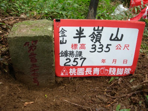 半嶺:標高335公尺 務課 第257 座標 309510,2793152 (金山)