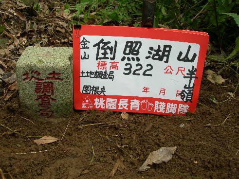 倒照湖山:標高322公尺 土地調查局圖根點 座標 310011,2792286 (金山)
