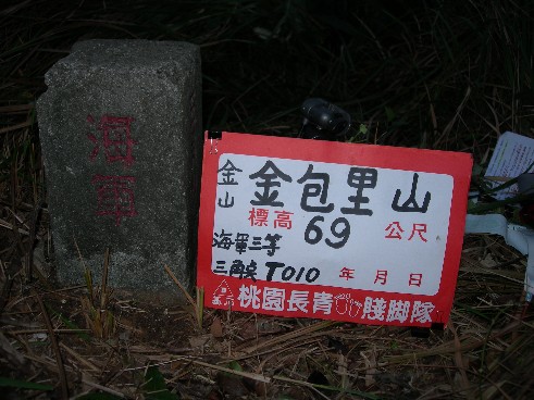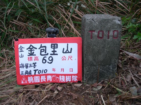 金包里山:標高69公尺 海軍 三等 三角點 T 010 座標314346,2791095 (金山)