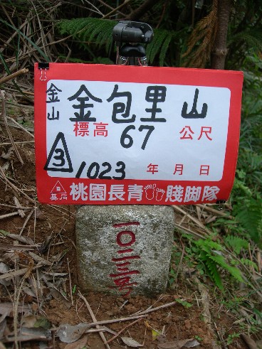 金包里山:標高67公尺 三等三角點 1023 座標 314341,2791096 (金山)