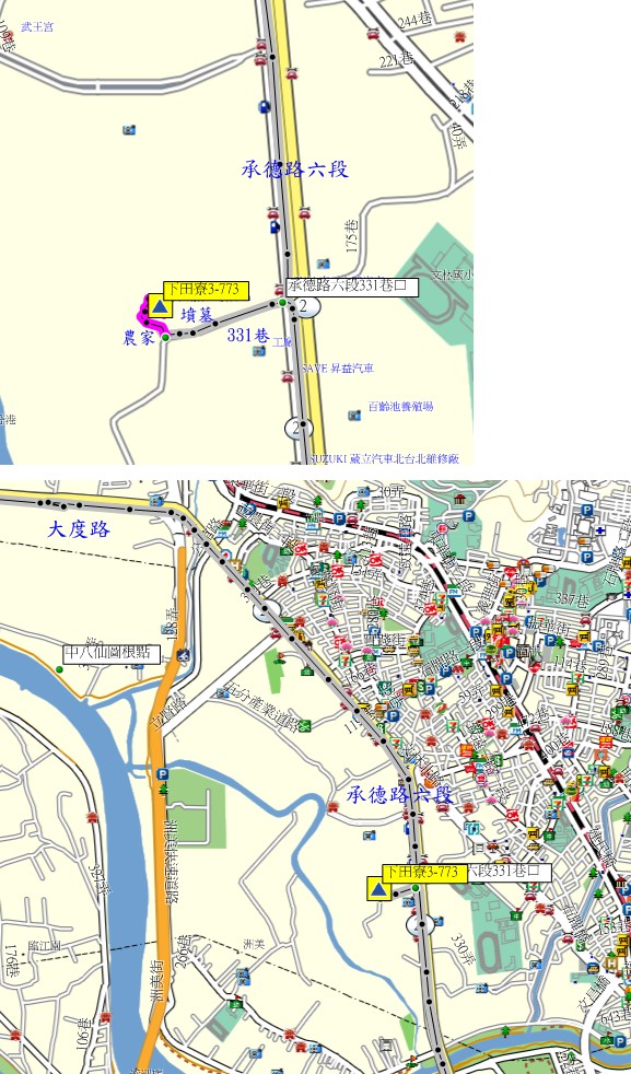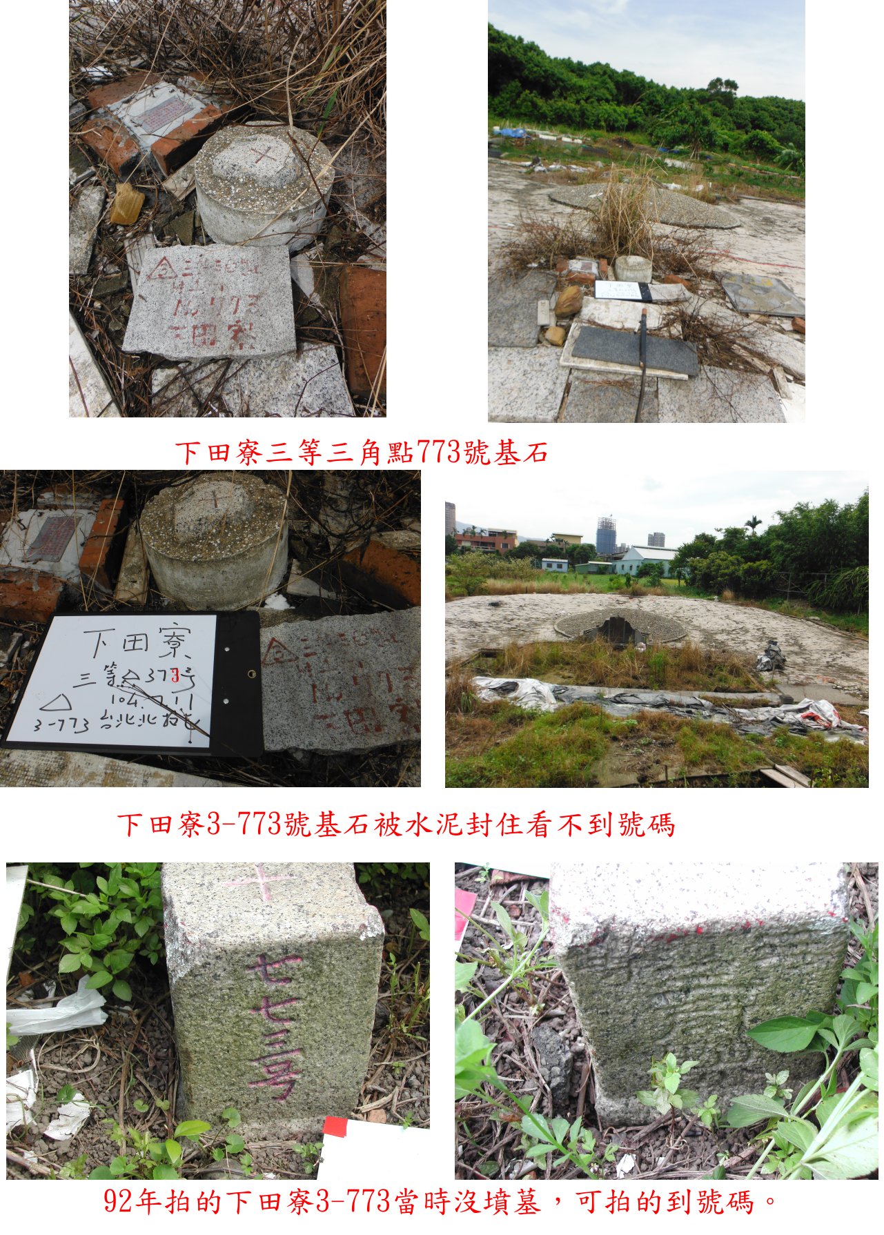 2、下田寮:台北市北投區,標高3公尺, 三等三角點773號基石。