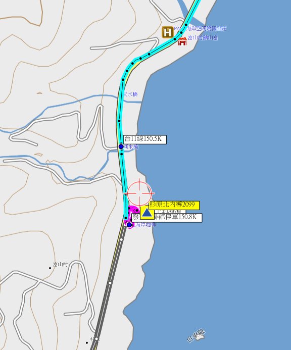 由台東鯉魚山回至台11線164.05K叉路,左轉台11線北行走13.3K(150.8K處),於舊時的黃金海岸咖啡館停車場停車。