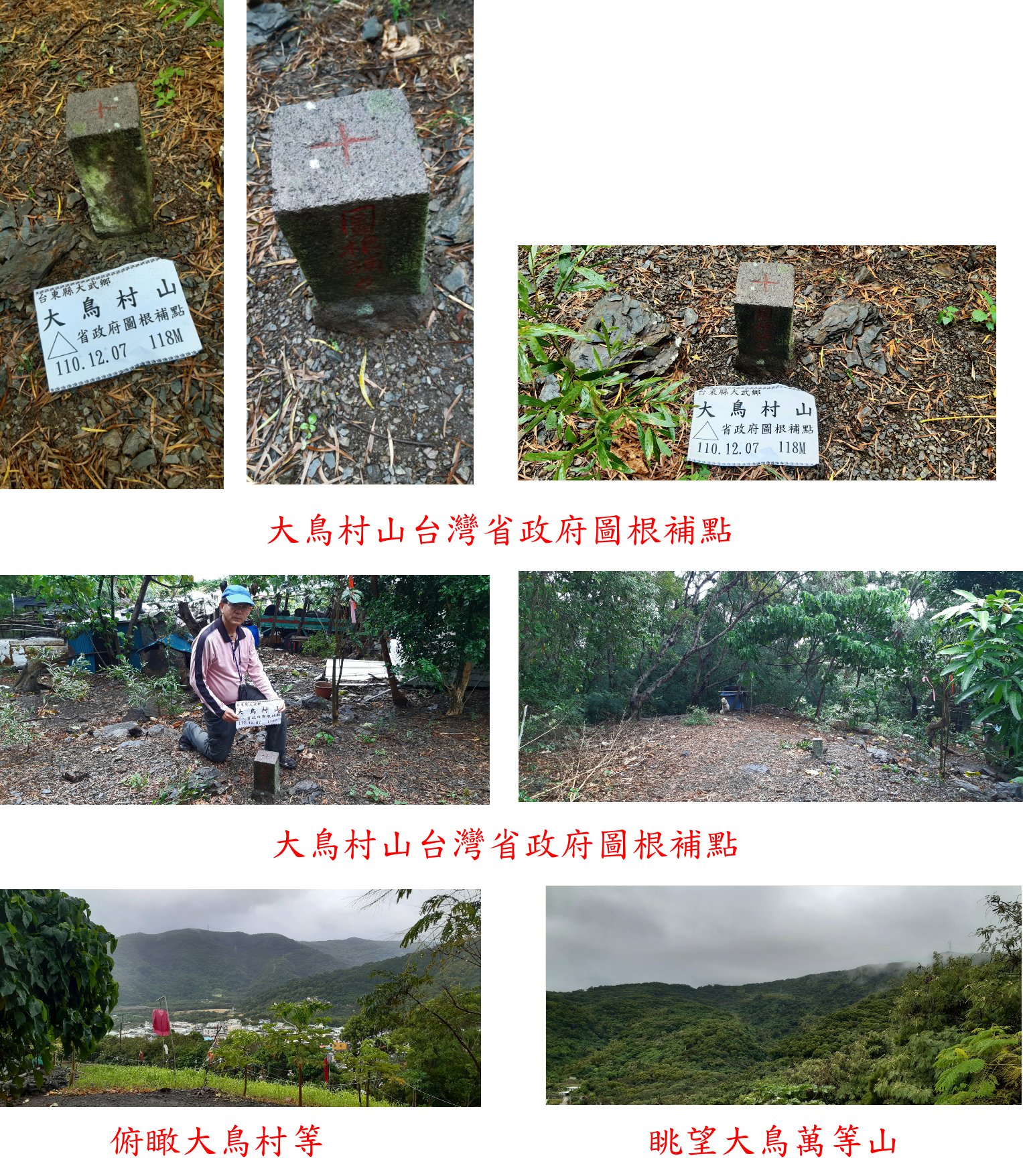 2、大鳥村山:位在台東縣大武鄉,標高118公尺,台灣省政府圖根補點,車可達;座標240151 2476695。