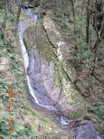 11:56 過溪,續行不久,回首可望及此溪下方之小瀑布,沿石床蜿蜒而下。