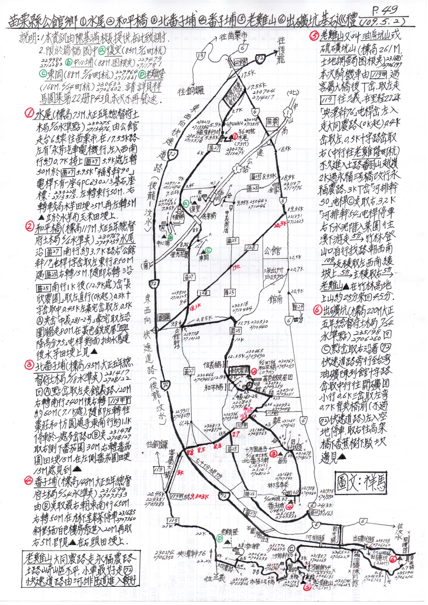 2水尾點位在苗27鄉道5.95K處,「福亨幹90」電桿左入,電桿下有一座GPC10312基石,座標:230228.2713515