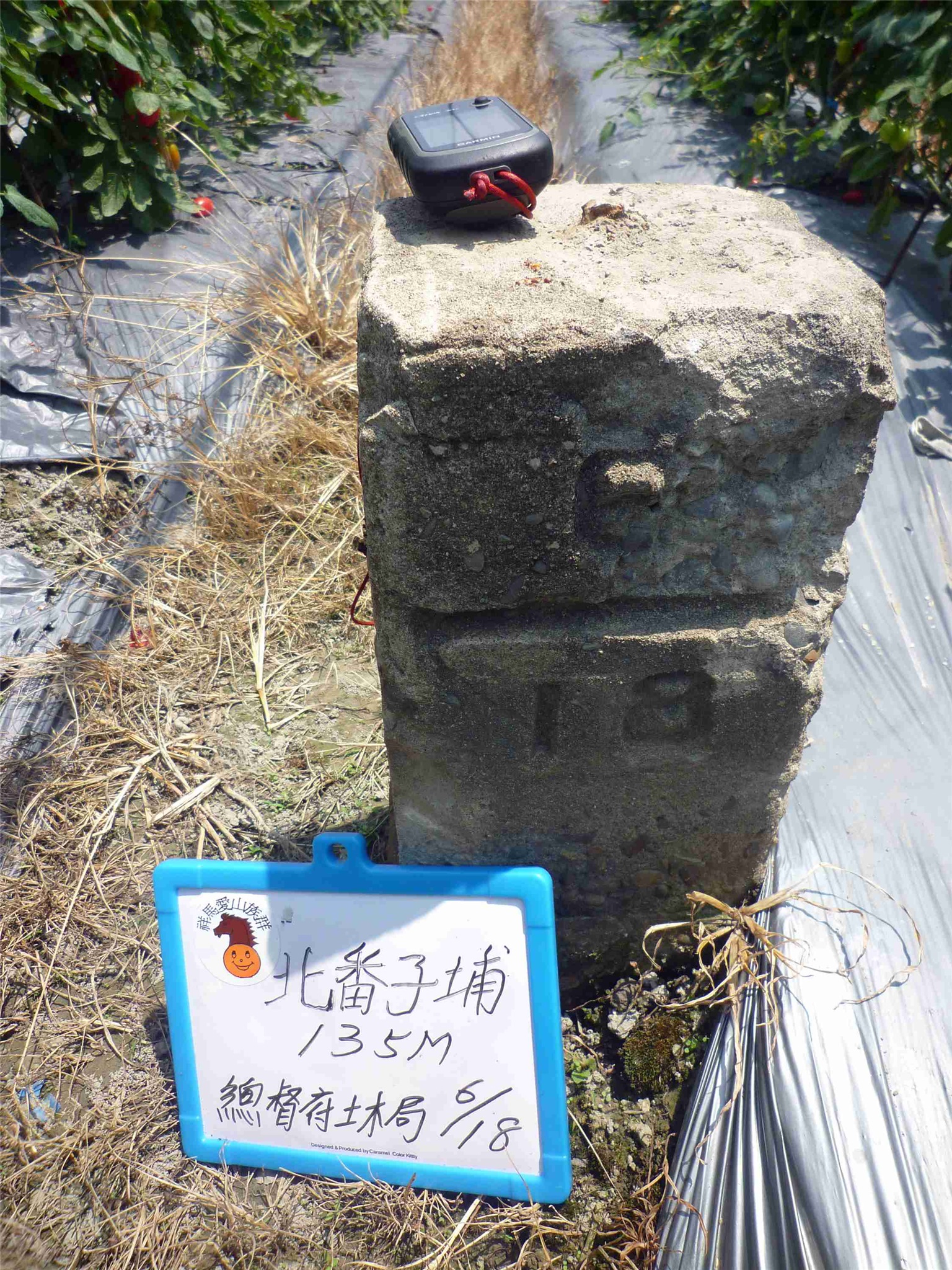 11北番子埔(標高135M,日治大正五年總督府土木局6/18水準點),座標:231417.2708122,在番茄園內田埂間