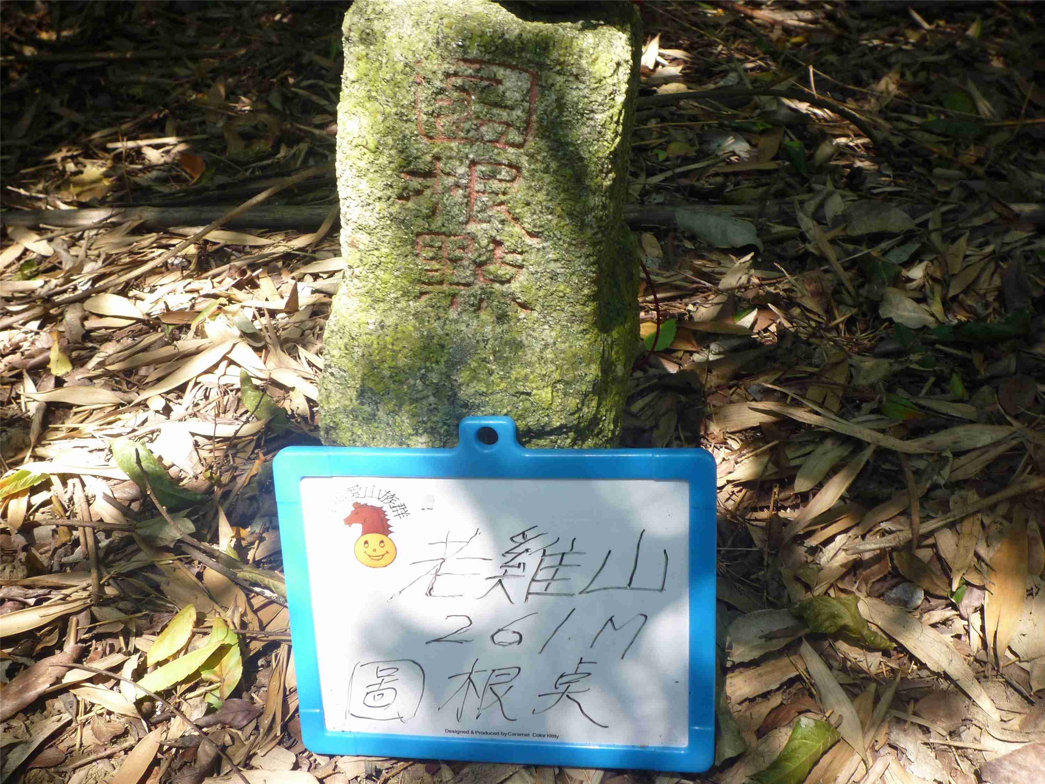 17老雞山又叫油房坑山或硫磺坑山(標高261M,土地調查局圖根點),座標:231685.2706197,在竹林高處