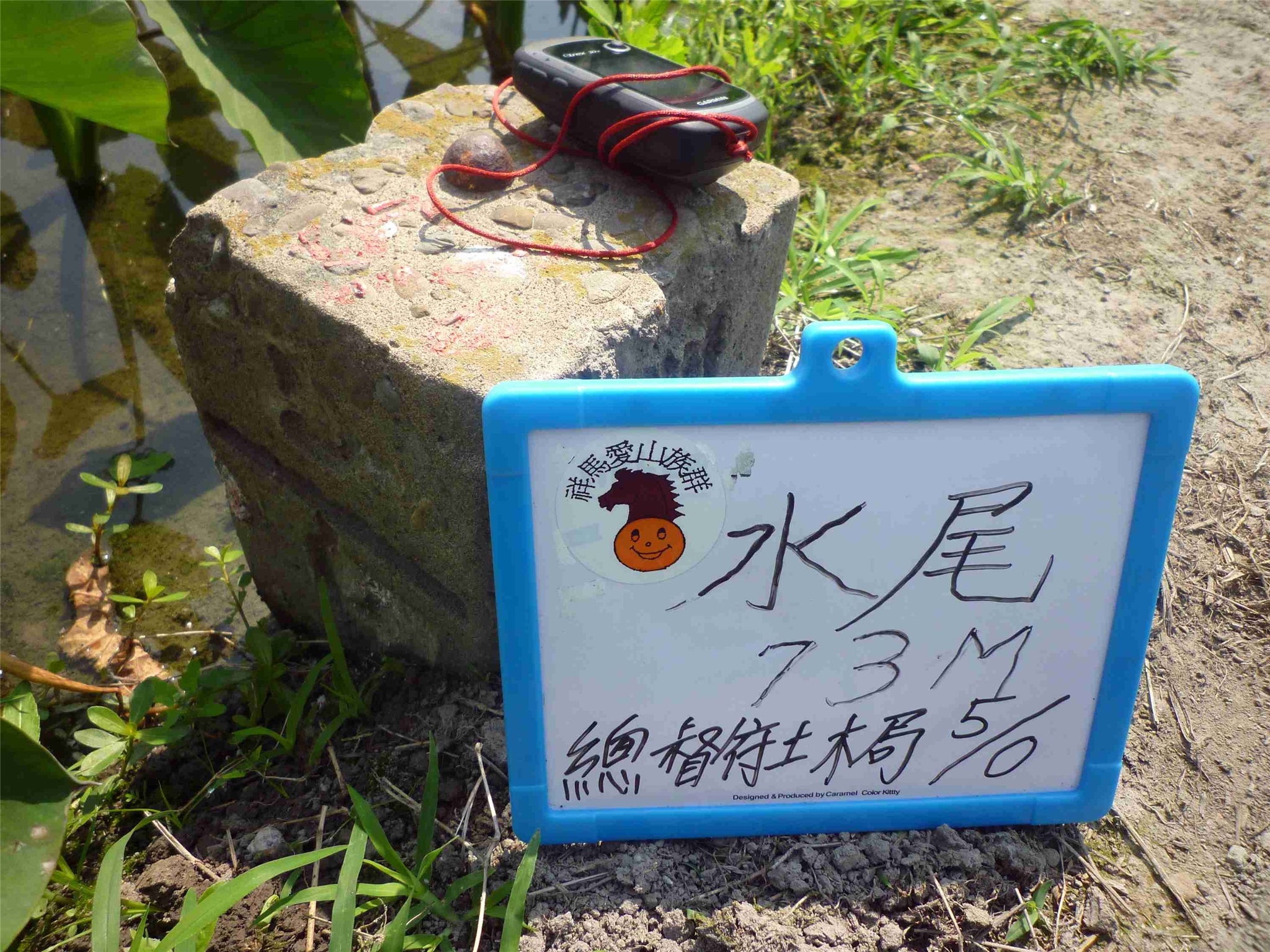 3水尾(標高73M,日治大正五年總督府土木局5/0水準點),座標:230276.2713475 ,基石在水芋和玉米田埂上