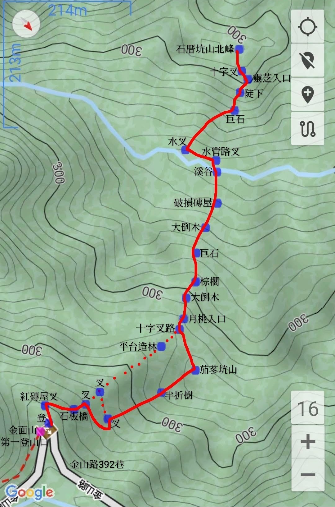 16:01回15:22靈芝入口,續循支稜下